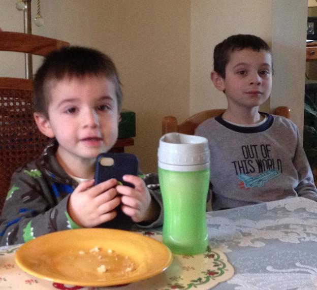 Our last breakfast before heading back to Woburn - and I am not letting Daddy forget his IPhone