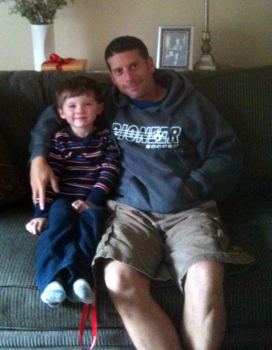 Uncle Scott's birthday and we took a few pictures with him. After singing Happy Birthday and having some cake, we then went outside to get some soccer tips from Mommy and MeMa.
