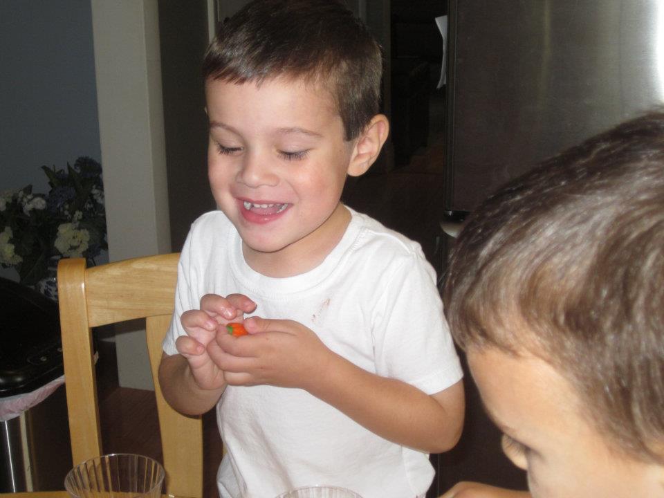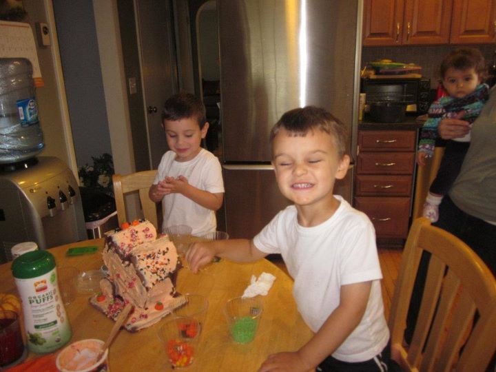 Here I am with Trey making a Gingerbread House while Aunt Whit keeps Lilly from knocking it down. And I guess Gingerbread is a favorite of Turkey Hawks. I also am trying on a possible Halloween costume - doesn't look like Mickey Mouse to me
