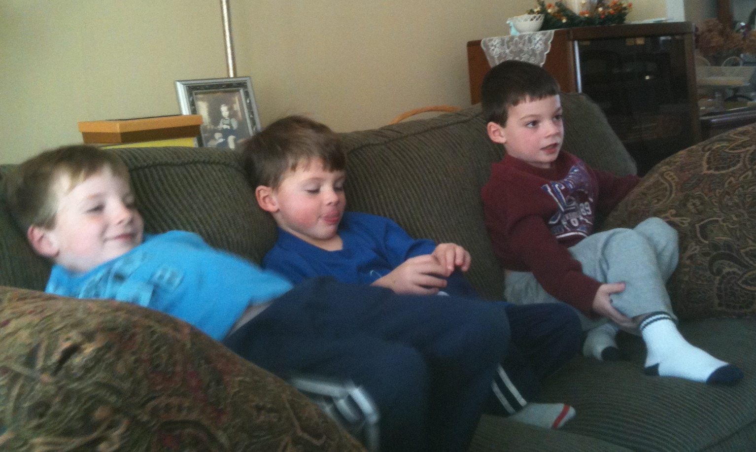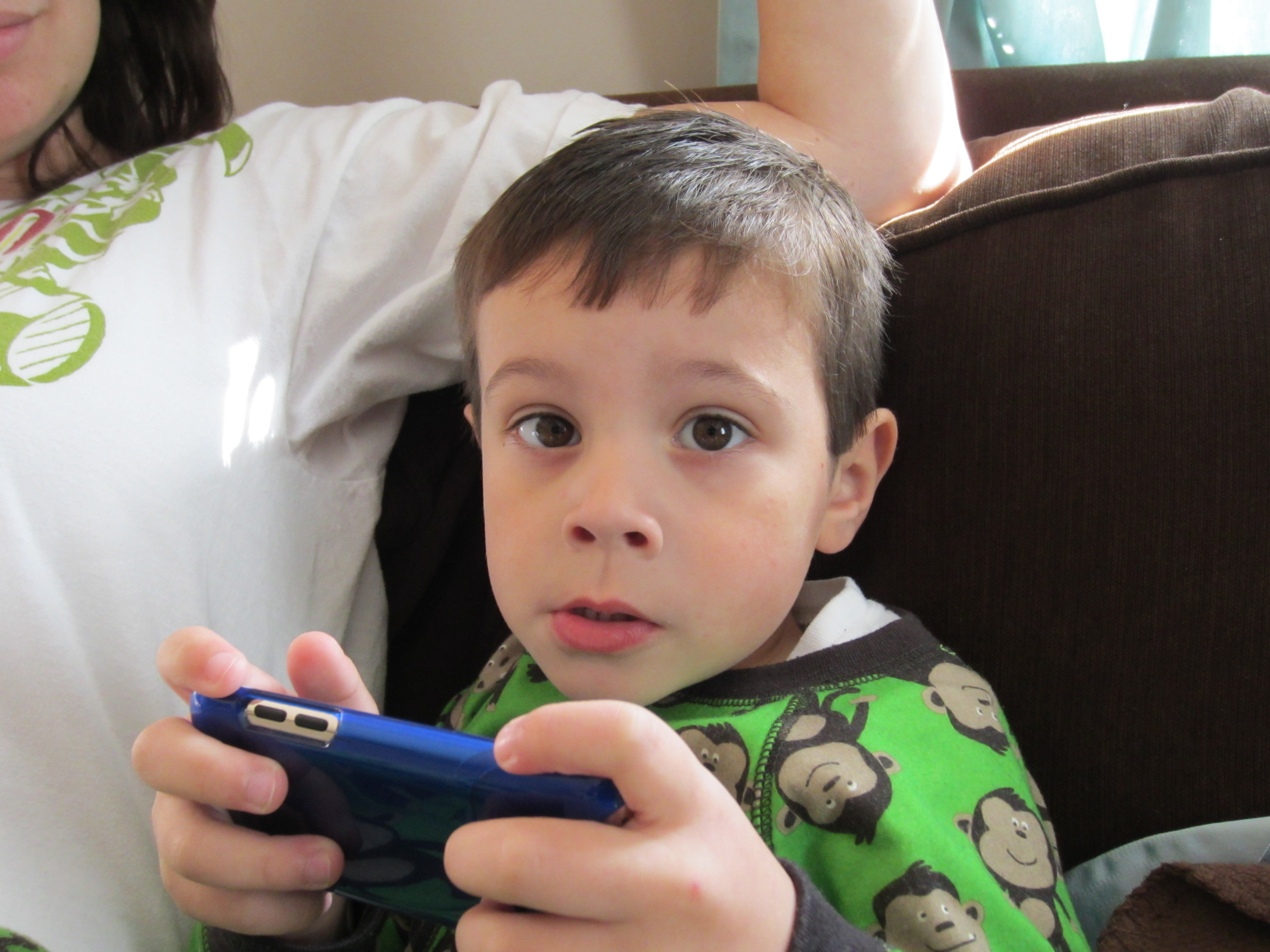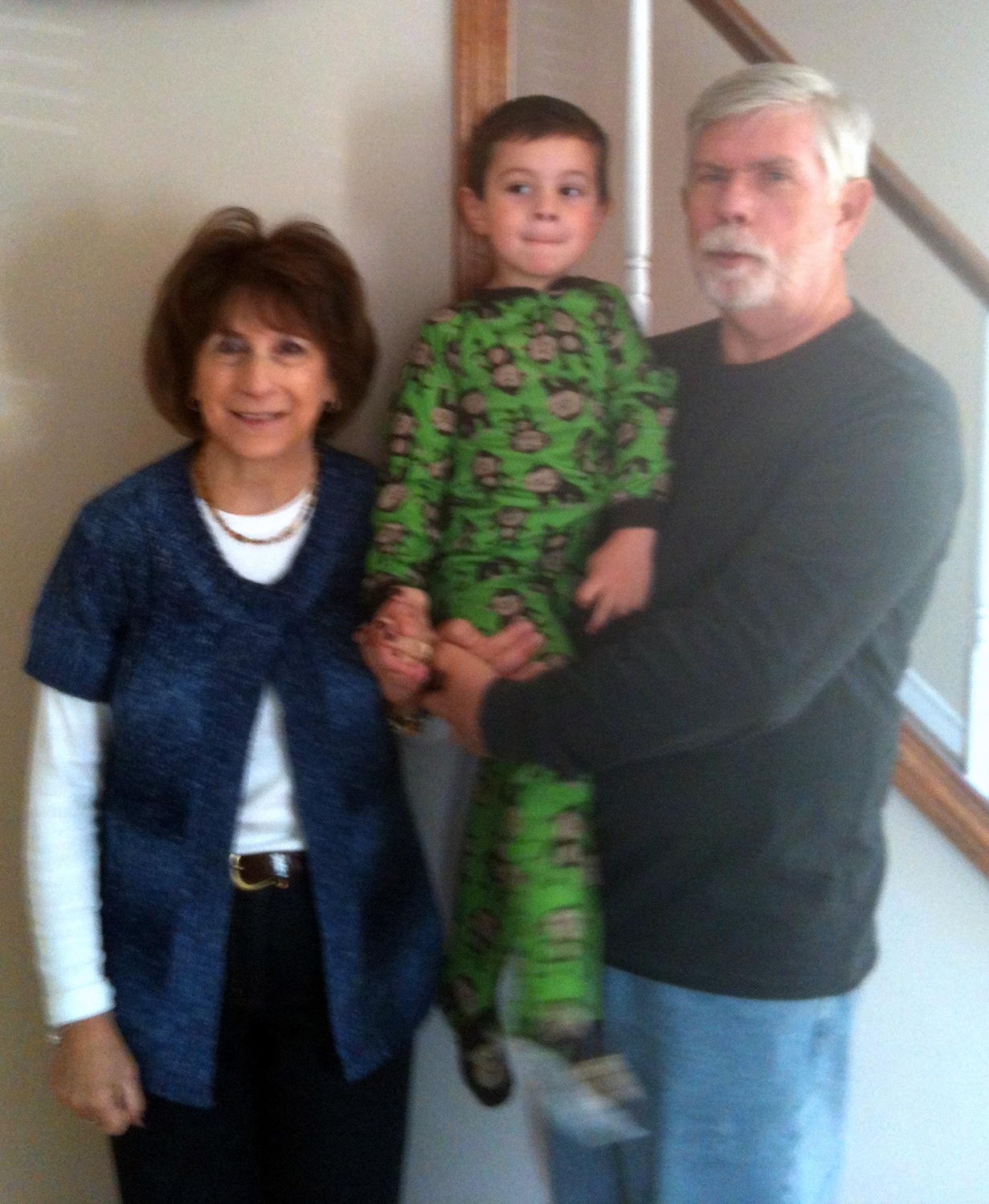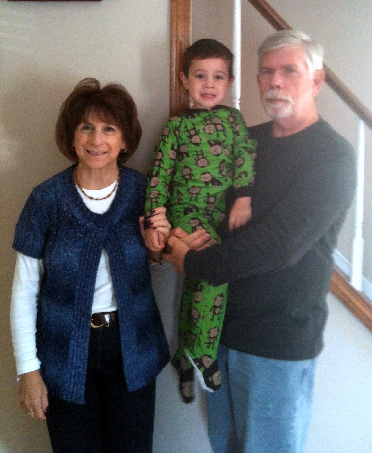 MeMa and Pop-E are heading home and took a picture with them with my smile and no smile. Here I am with mu II "face" - total concentration. And last night is the 1st Time I slept until 9:15 without waking up. Must be my 4 year old treat to Mommy and Daddy. Will it last - probably not