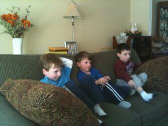 Today was the 1st time Pop-E is watching all 3 of us - well 2 since Luke had to go with MeMe to the eye doctor. Daniel and I played WII, had lunch, watch a soccer game on TV, did a craft, went to Uncle Scott's game at Oak Knoll which NP won in overtime. We also now know what it is like to sit with crazy "Soccer Moms" - and I needed a nap
