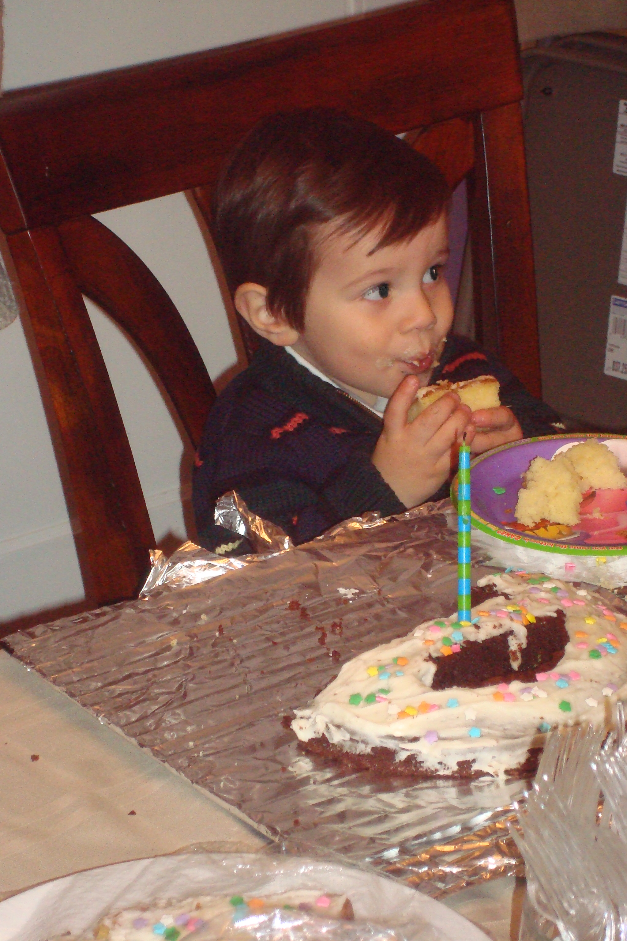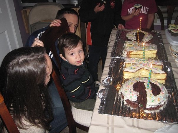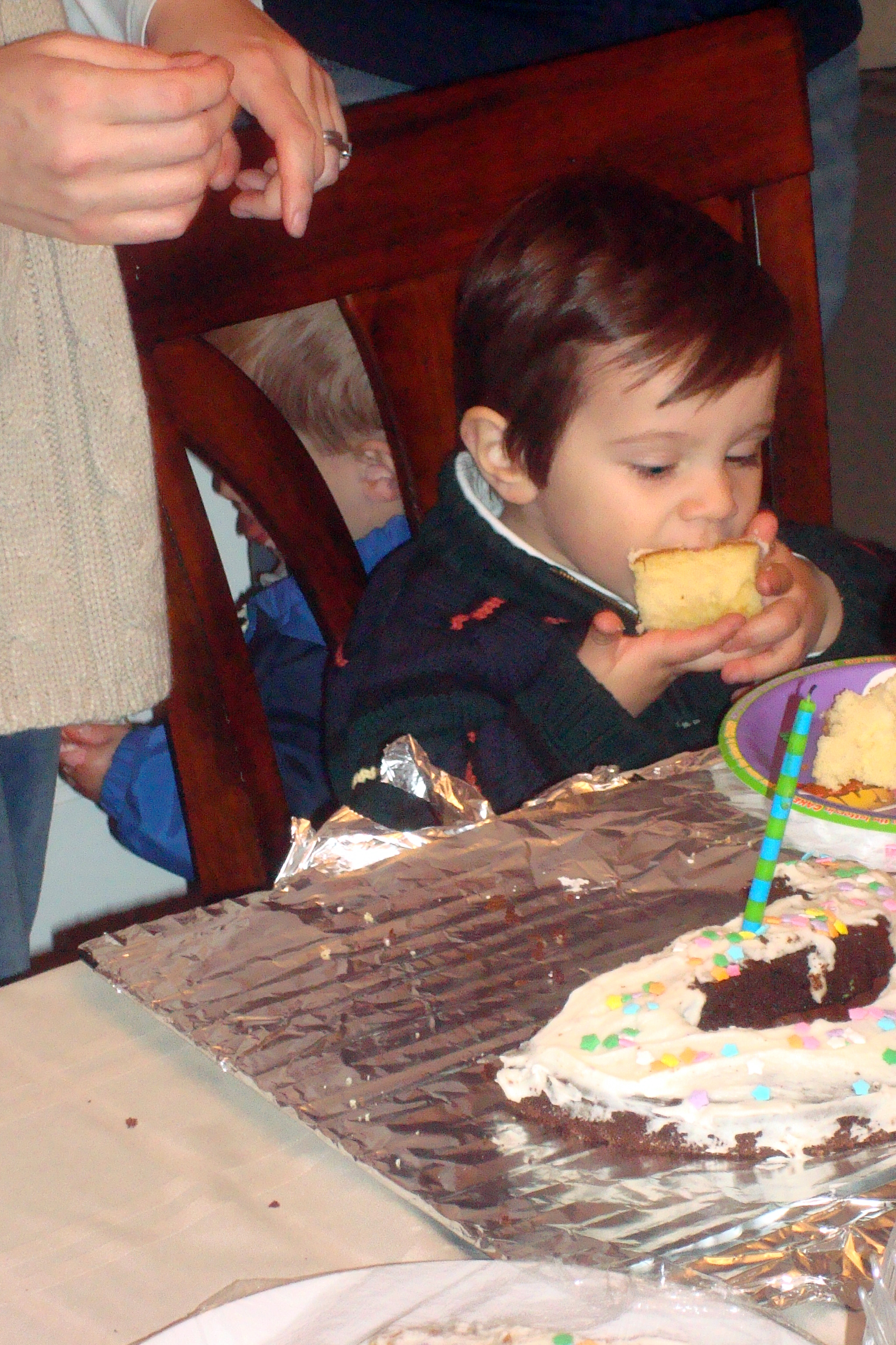 My 2nd birthday celebration. I had lots of friends and family over as well as a new cousin named "Bauer" - named after JACK - can you pick him out! He is the one chewing on my favorite stuffed animal. Also check out my Birthday cake - get it - it spells CAKE - I am beginning to wonder about Mommy and Daddy.