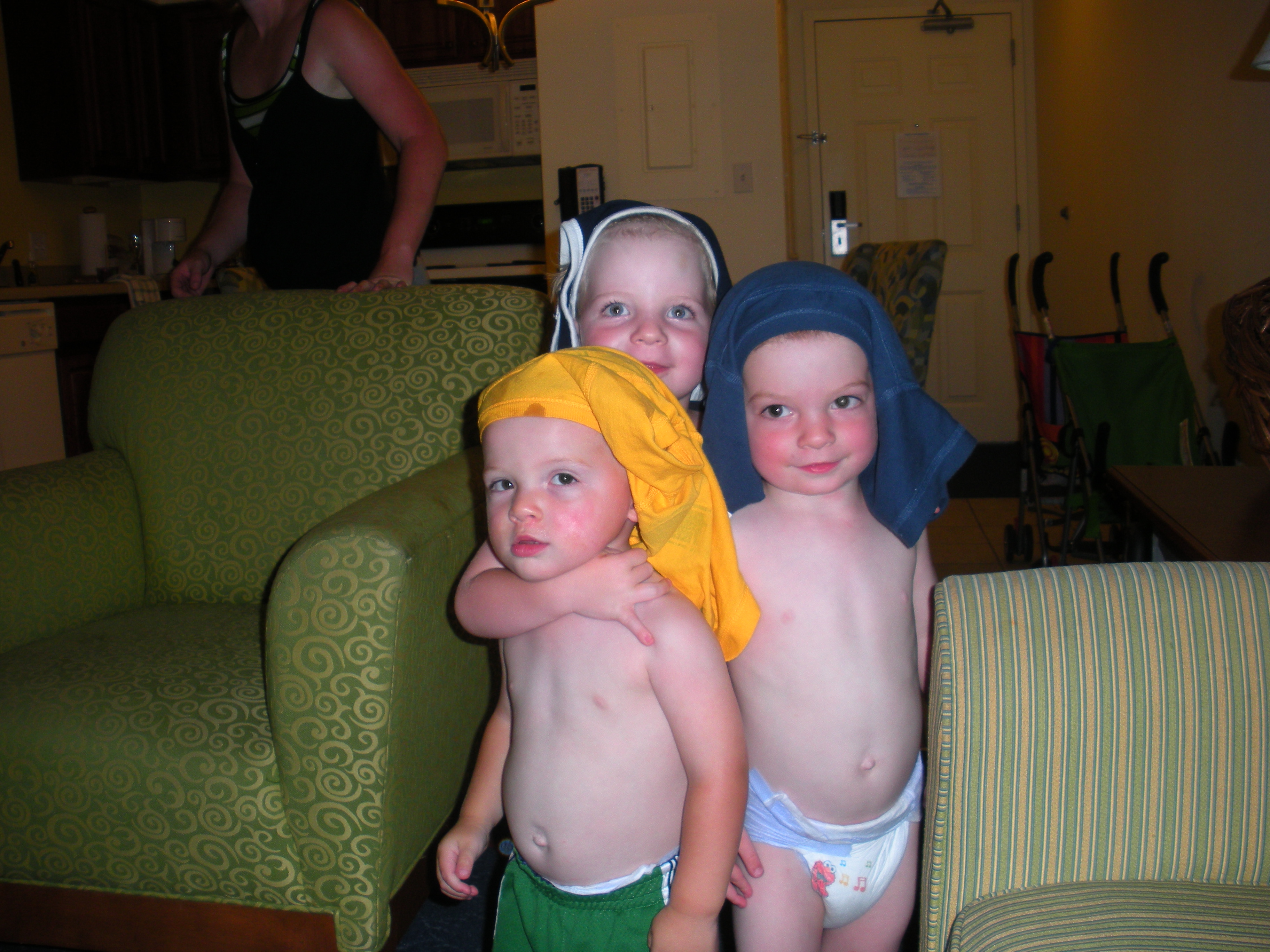 2) After several attempts to get them back to sleep, we brought them into the family room to watch a show