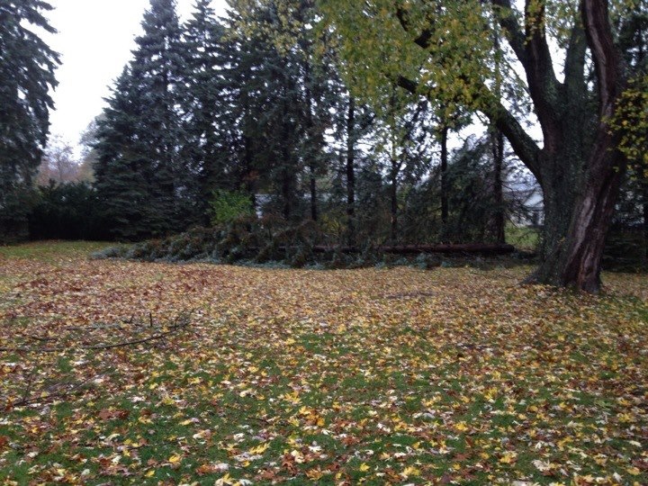 A big tree fell in our back yard because of SANDY. Good thing it fell away from the house. Mommy does not like being alone (not that Evan and I were not looking after her) when storms hit, so she packed us up and heard for aunt Whit's house.