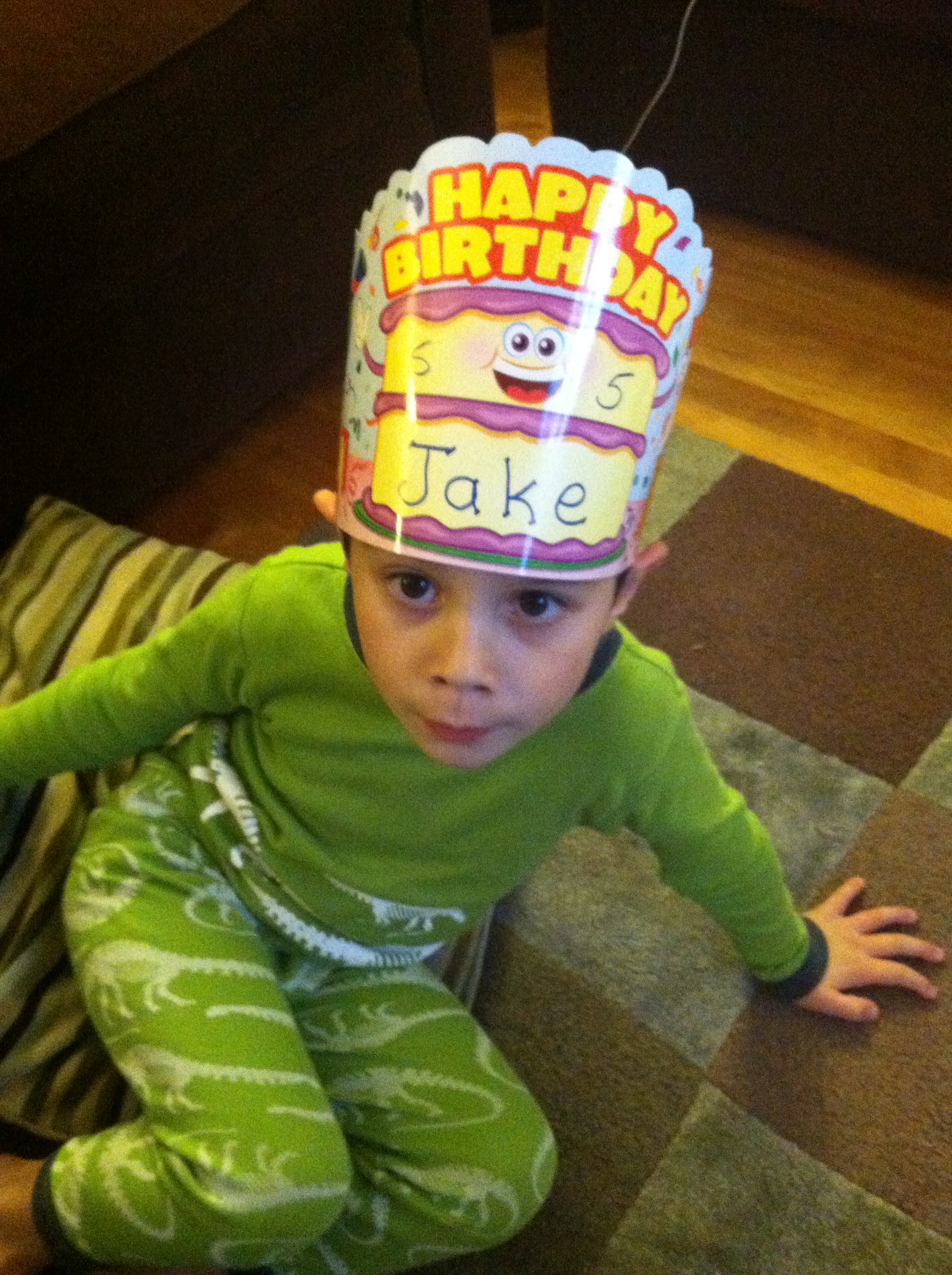 My real birthday and wearing my party hat for MeMa and Pop-E