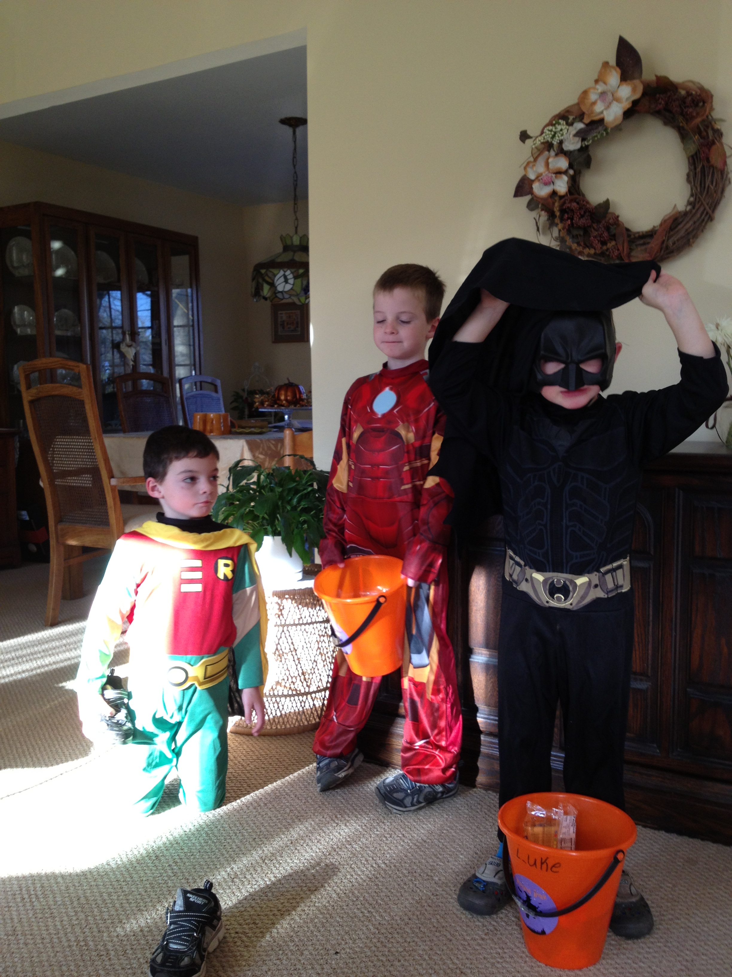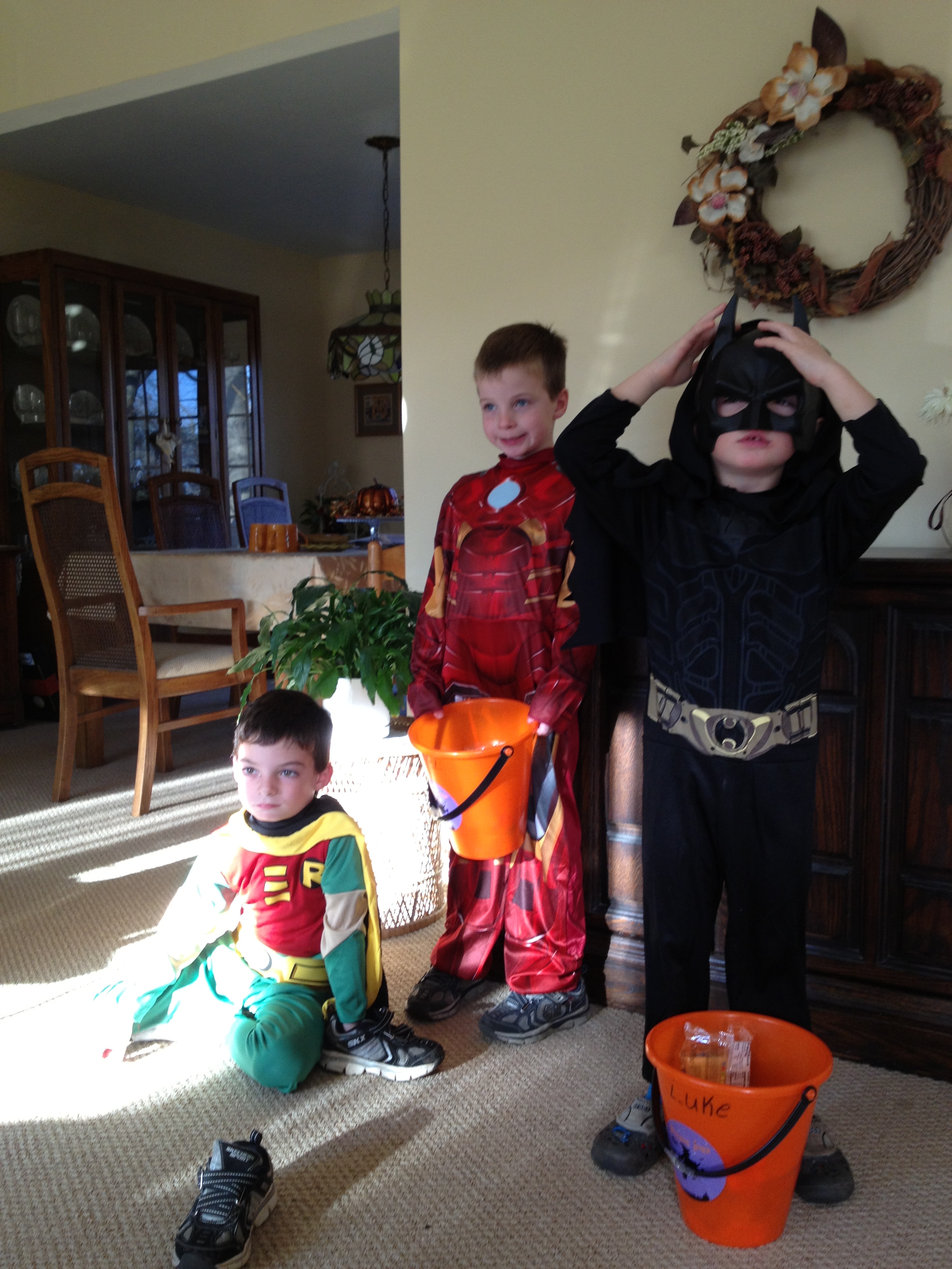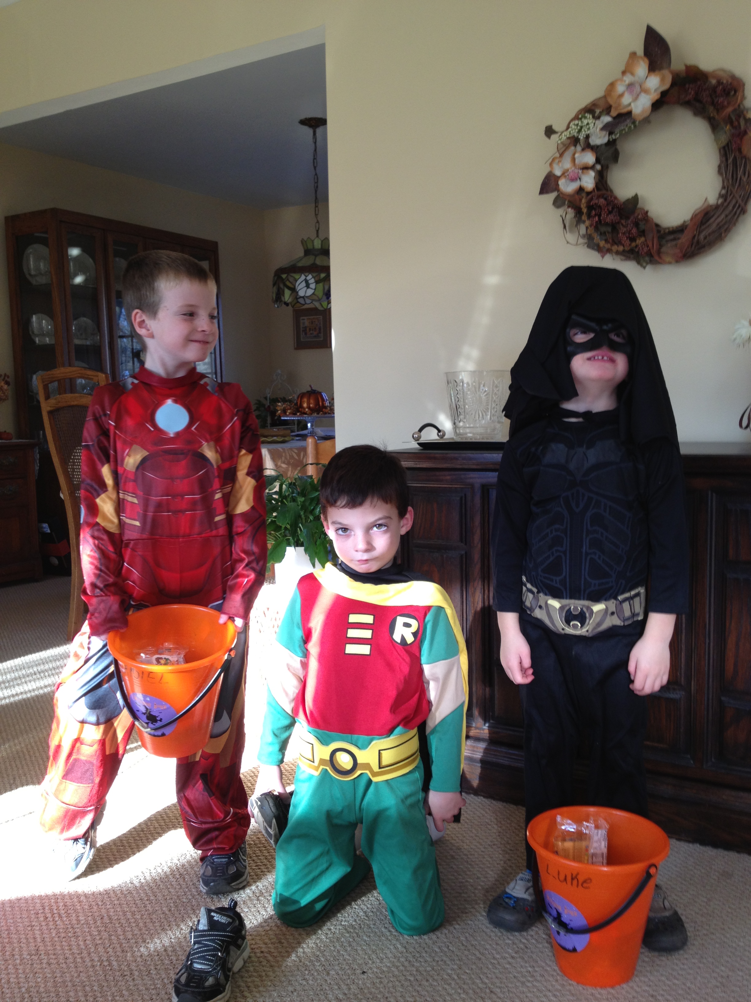 Finally we get to celebrate Halloween in New Jersey. Here we are in our costumes. Do you notice that we are getting worst for the 3 of us to look at Pop-E when he wants to take a picture