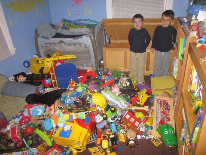 Well Trey and I were trying to think of something different to do and came up with the brilliant idea of piling all my toys in my play room into the middle of the room. Not a bad look - looks like something Andy W. would create