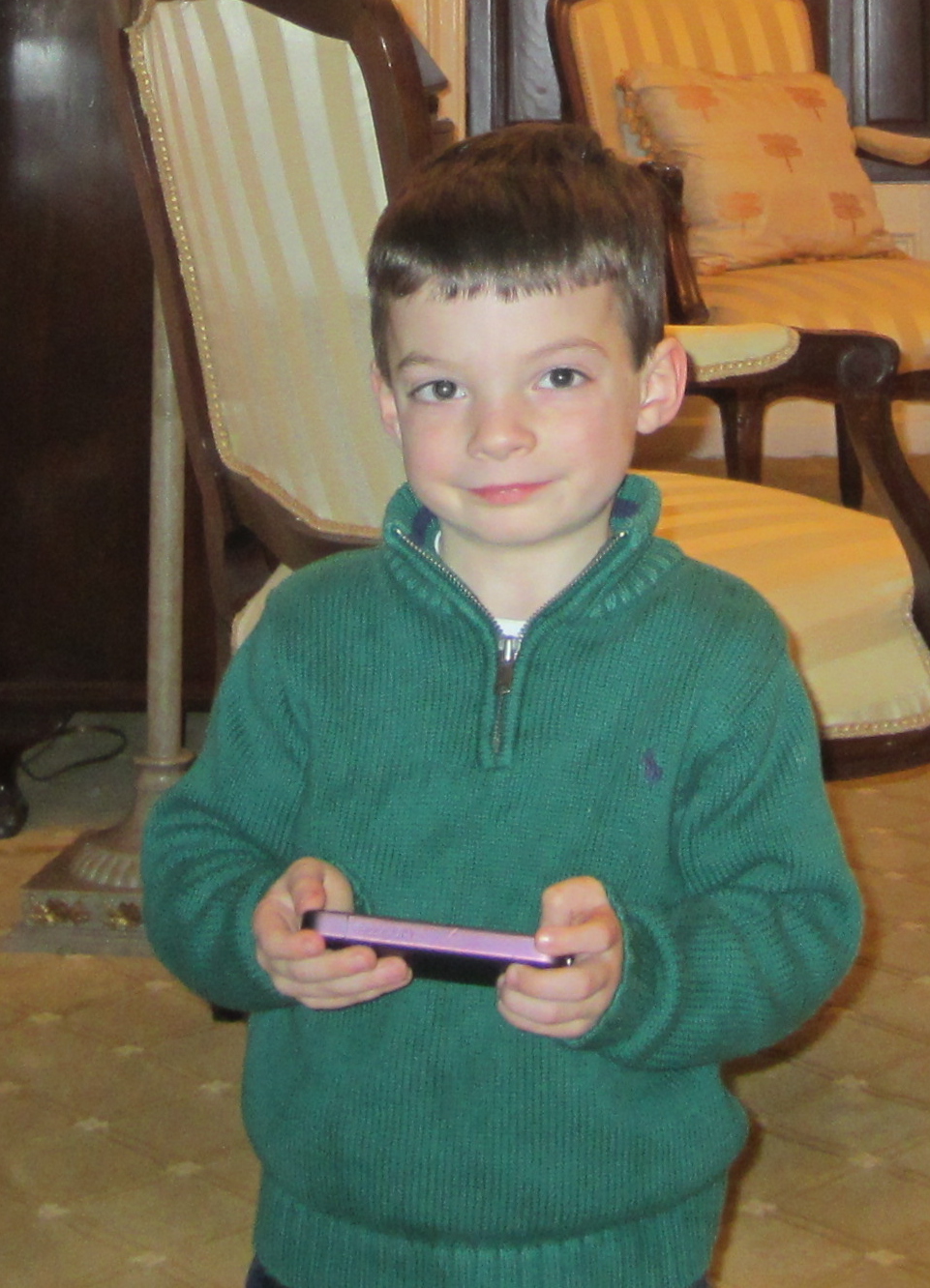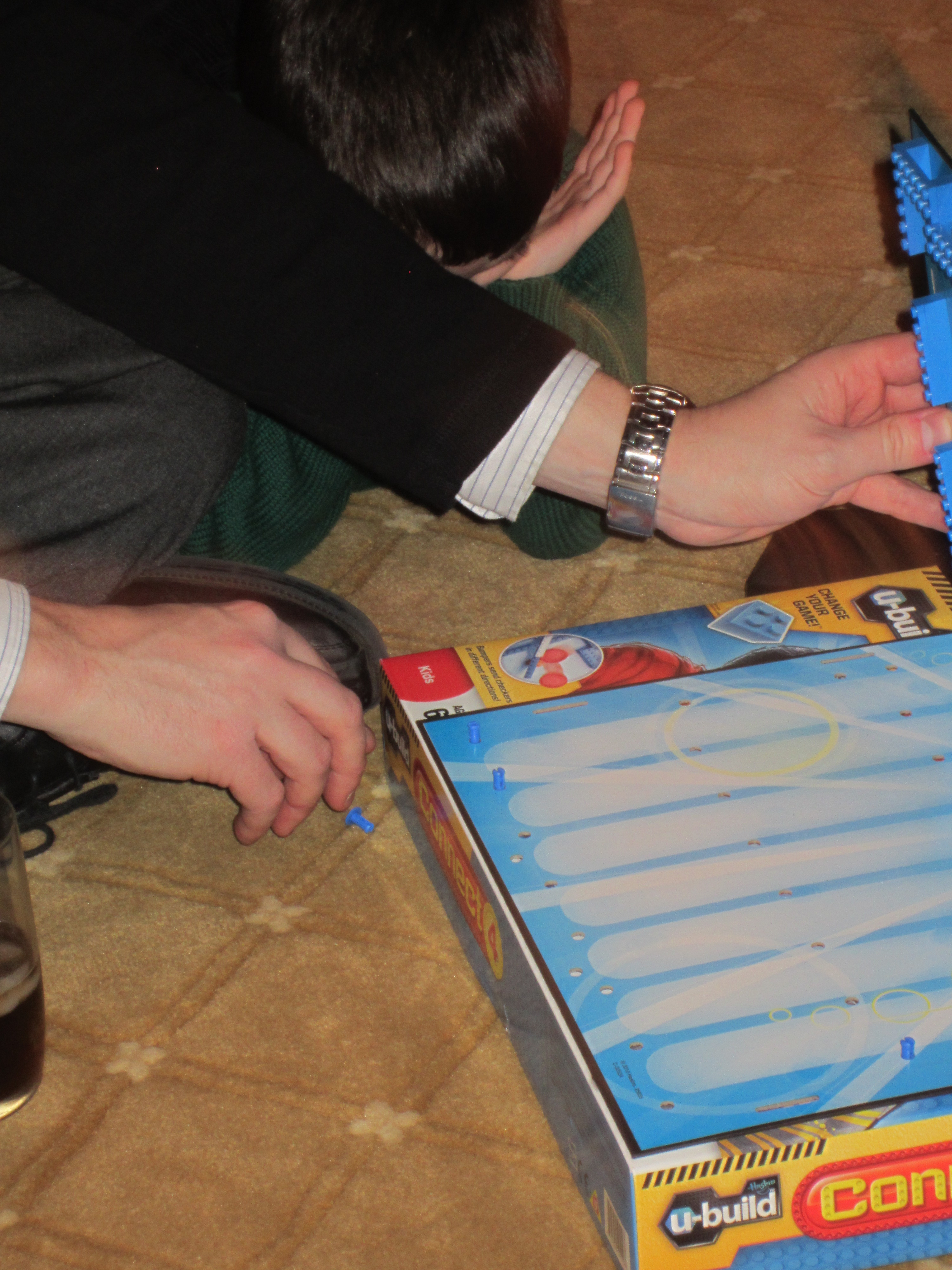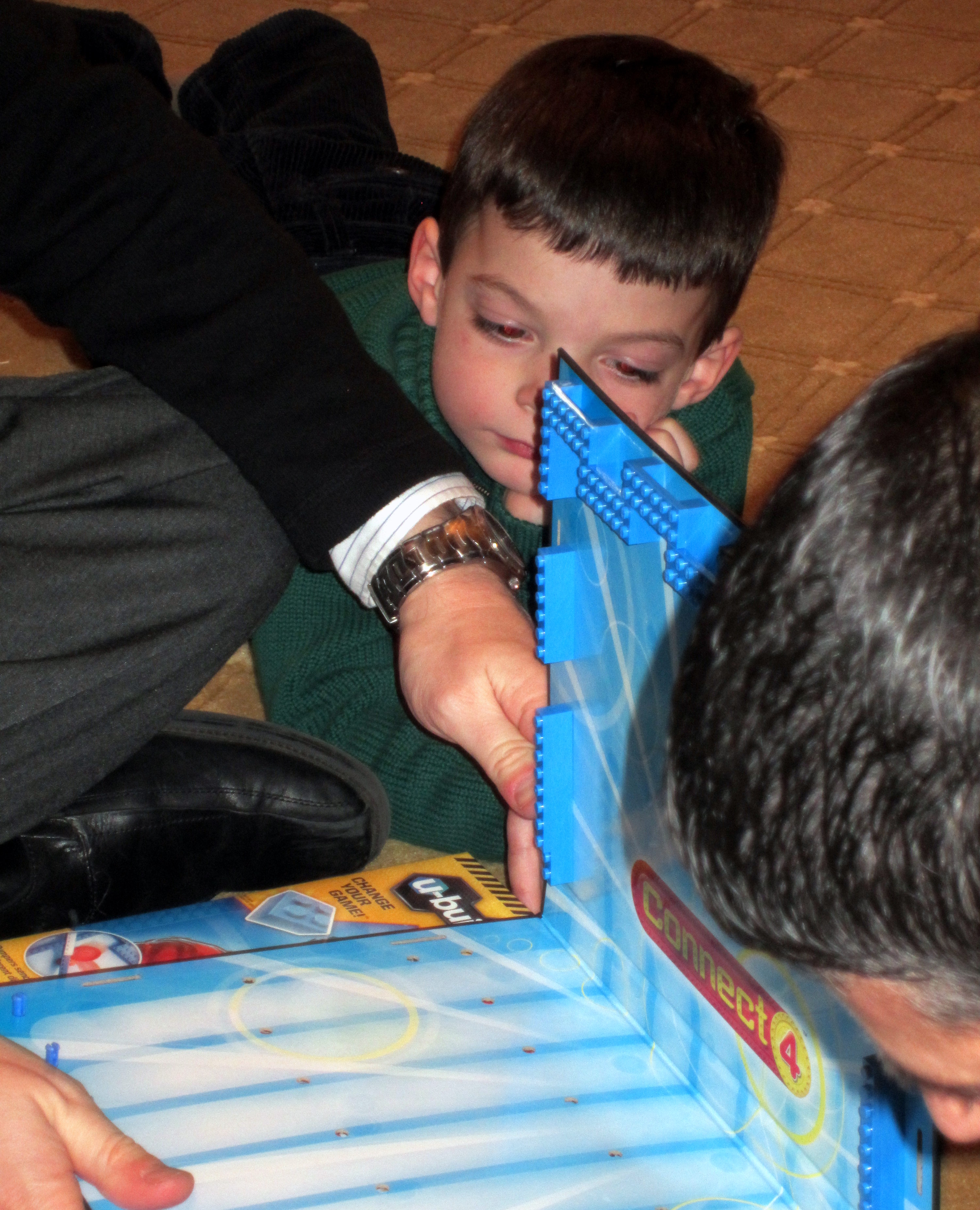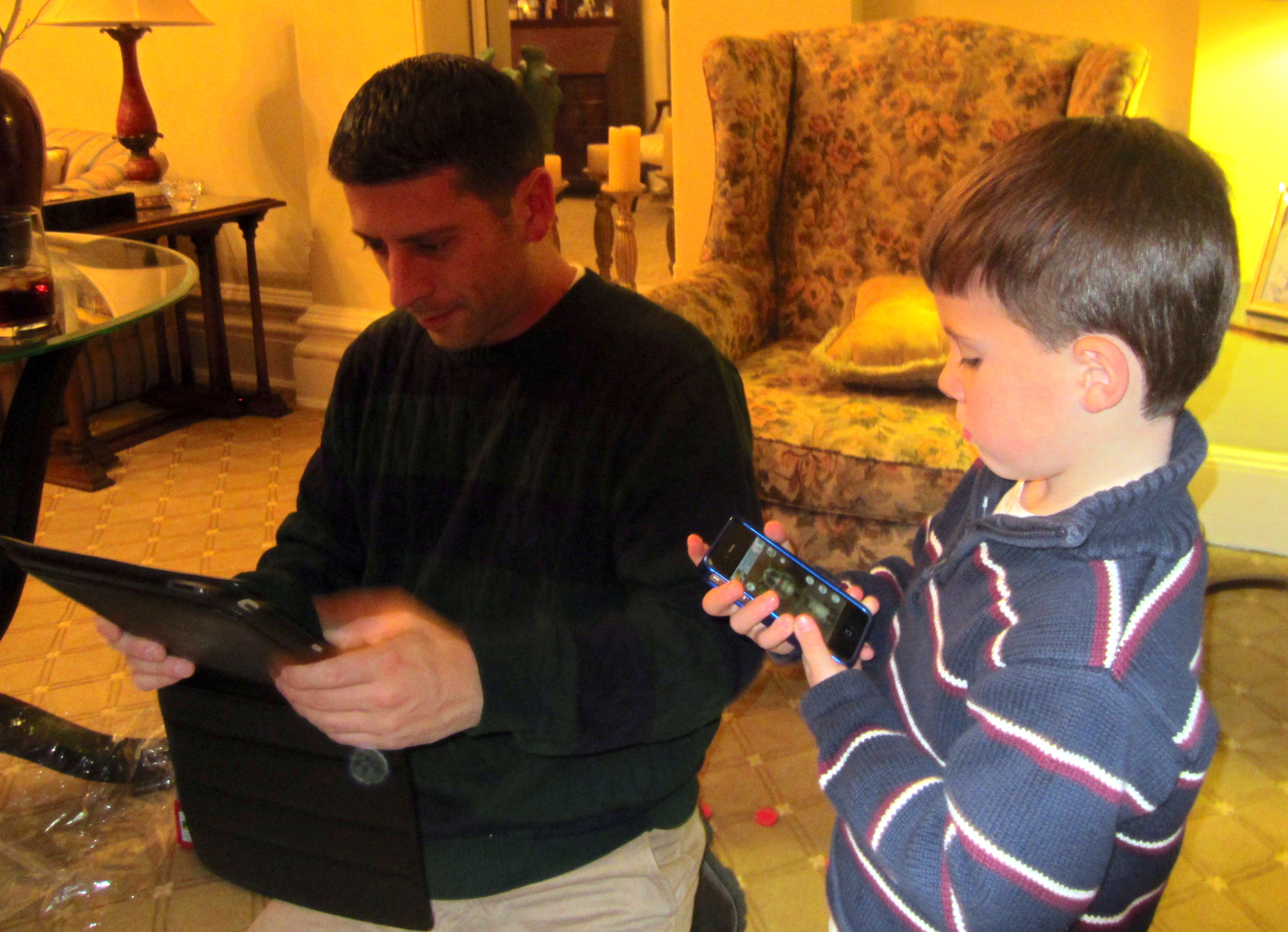 We got a portable "Connect 4 Game " for Christmas and Daddy and Uncle Scott were putting it together - a half hour later they were still trying and then all of a sudden Uncle Scott took out his IPAD and gives us his IPhone to play with and the CONNECT 4 goes back in the box