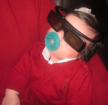 Oh, have you ever seem Santa in 3D - not a pretty site. Of course Evan was napping behind those glasses to be ready for keeping us up at night time