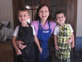 I am at Grammy and Grampy's house helping Grammy do some Christmas Cookie baking. Here are Trey and I with our aprons on (mine says - For This I spent years in College). Taking a break with Grampy. and finally giving Evan a hug