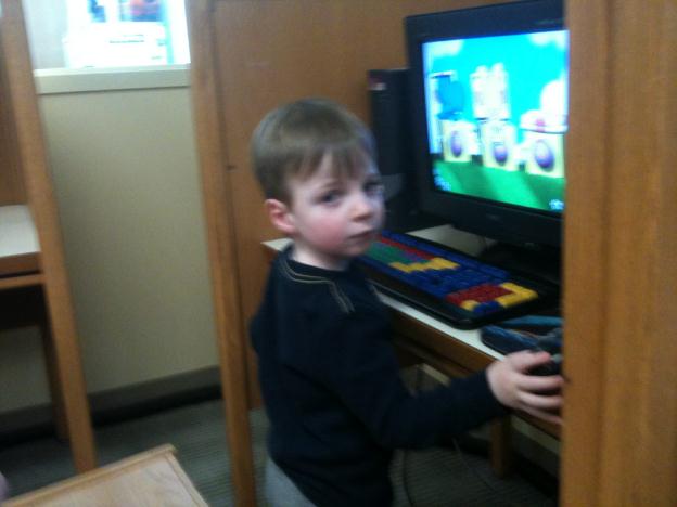 We love going to the Westfield (Pop-E's) library because they have computers and programs that are made for kids. I am more computer wise then Christopher but he is better at puzzles and games. Anyway we like going there, especially in the cold weather.