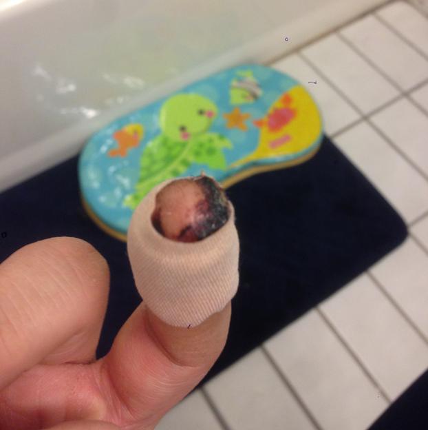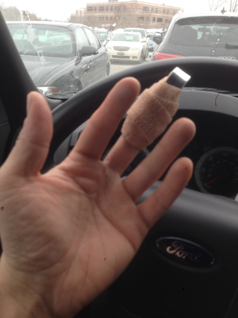 Daddy thought you could clean a clogged snow blower with out turn it off - guess what you cant's