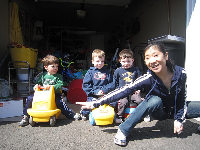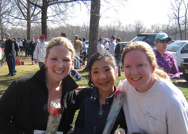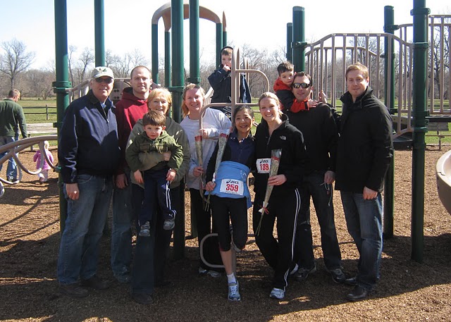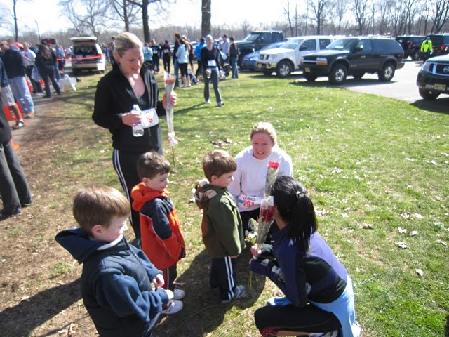Mommy has been practicing for a while to run in a race in Bridgewater. Today is the race and she is going to run with Aunt Anna and Aunt Anna's friend, Christina. Daddy and Uncle Michael were baby sitting so they could not run - HA, HA. We all went to cheer them on. Then back to our house for for some "La Mars" play time.