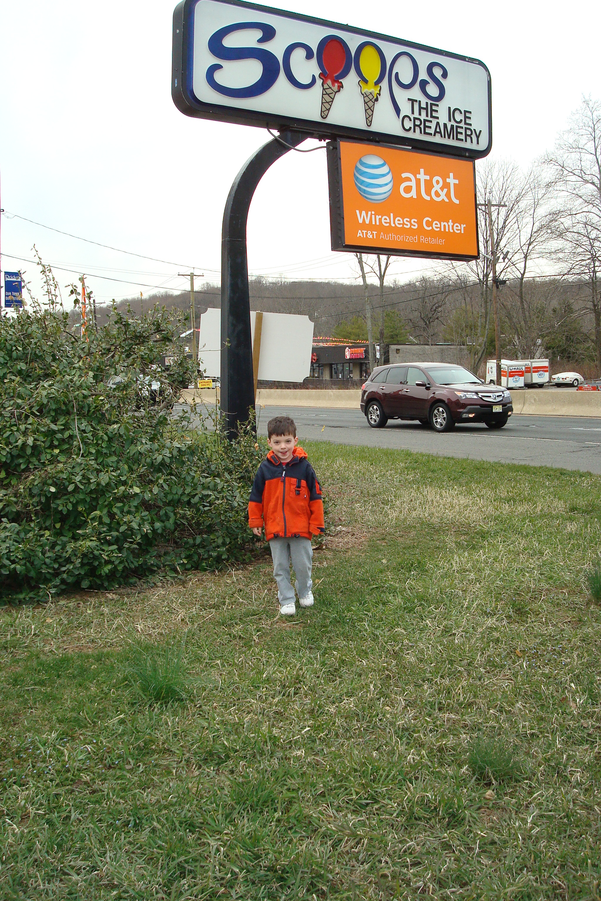I went to Me-Ma's school to see the chicks that were just born. There is also a picture hanging on the wall that Pop-E also loves. Then to Wendy's instead of McDonald's. But I did not get ice cream at Wendy's, because Pop-E said he would take me to a special place for ice cream. Well, that place was "Scoops". It is an ice cream store that Daddy use to go to all the time when he was in high school.