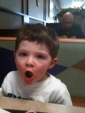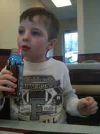 Pop-E and I are looking for a Star Wars movie - we went to 2 "Bonds & Noble" and 1 Borders until we found the #1 movie. Now everyone knows that the #1 is really the #4 in the sequence but #1 in the story. Then to Wendy's to discuss the movie and a touch of "Brain Freeze". And of course a video of me eating