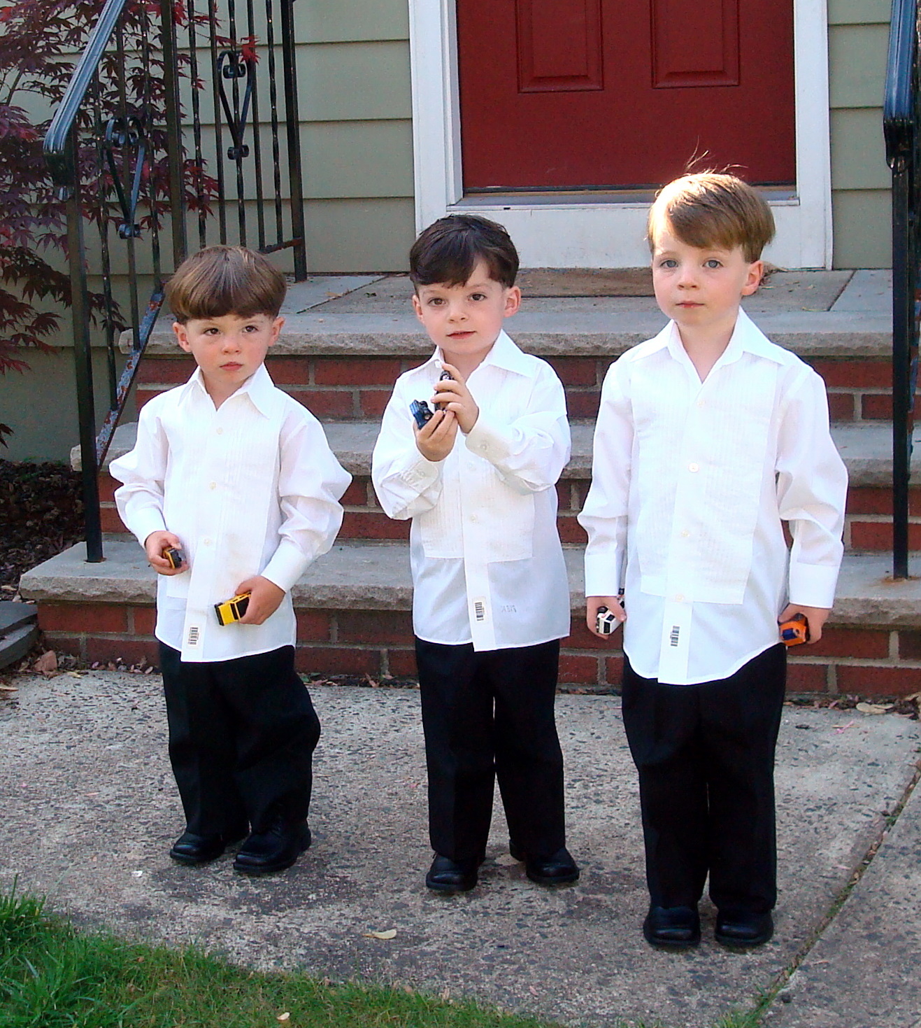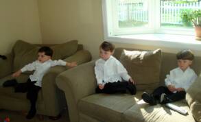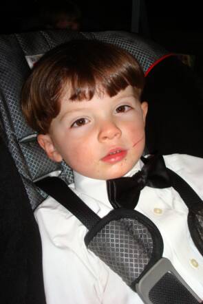 The end of the month and the big day has arrived for Uncle Michael and Aunt Anna - they are getting married and we are the ring bearers. Here we are relaxing, watching some TV, heading to the wedding and the finished product.