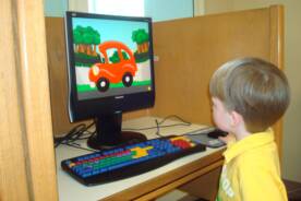 I love going to Pop-E's library because they have computer for kids. Here I am doing my thing. Is there anything better then a good computer game followed by Chicken Nuggets, French Fries, Chocolate milk and an ice cream cone.
