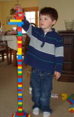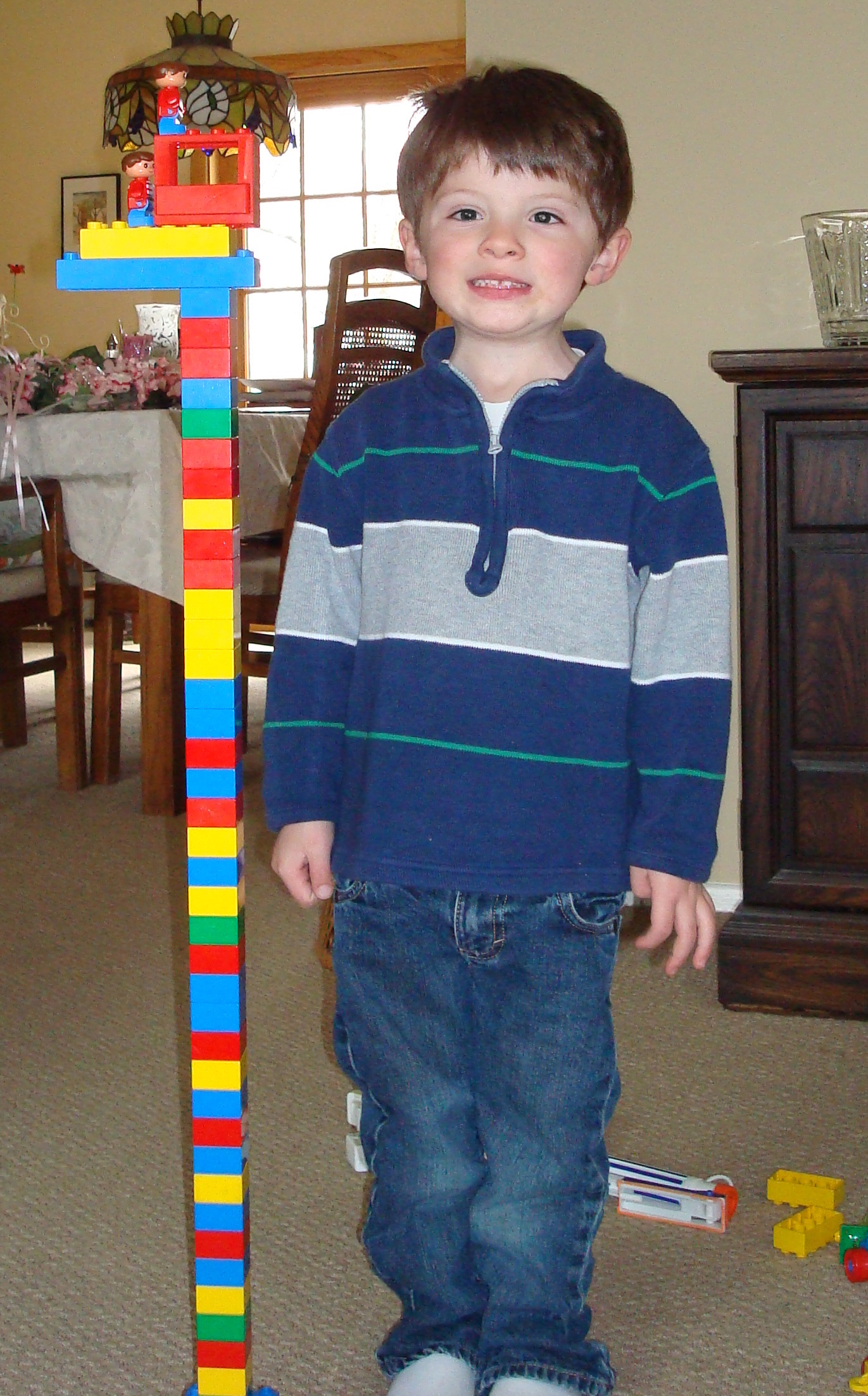 Pop-E brought a ton of Legos at a garage sale & here I am building a tower that is almost as tall as I am.