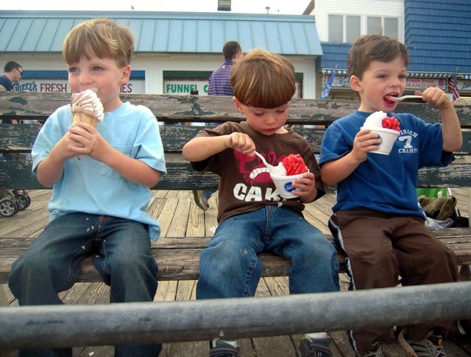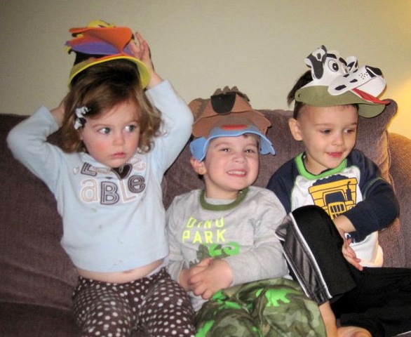 Here is a picture of my NJ Cousins eating ice cream at the Jersey Shore and Trey, Megan and I with funny hats