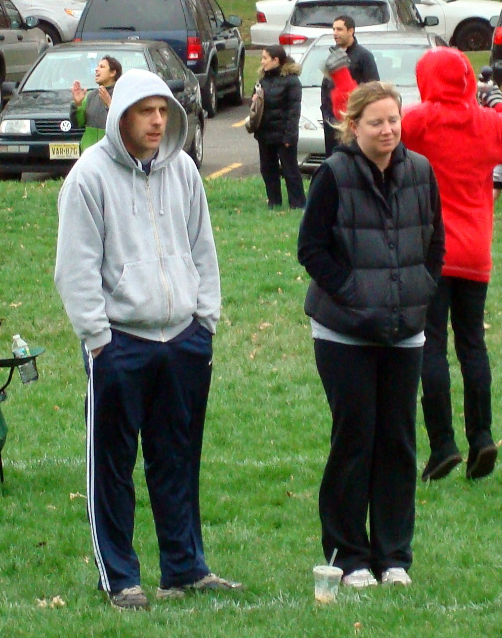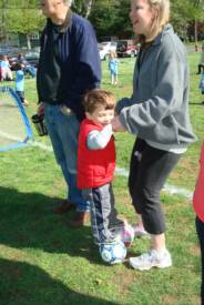 Guess what - most of the kids have cleats on. We think Mommy and Daddy were a little cold standing on the field