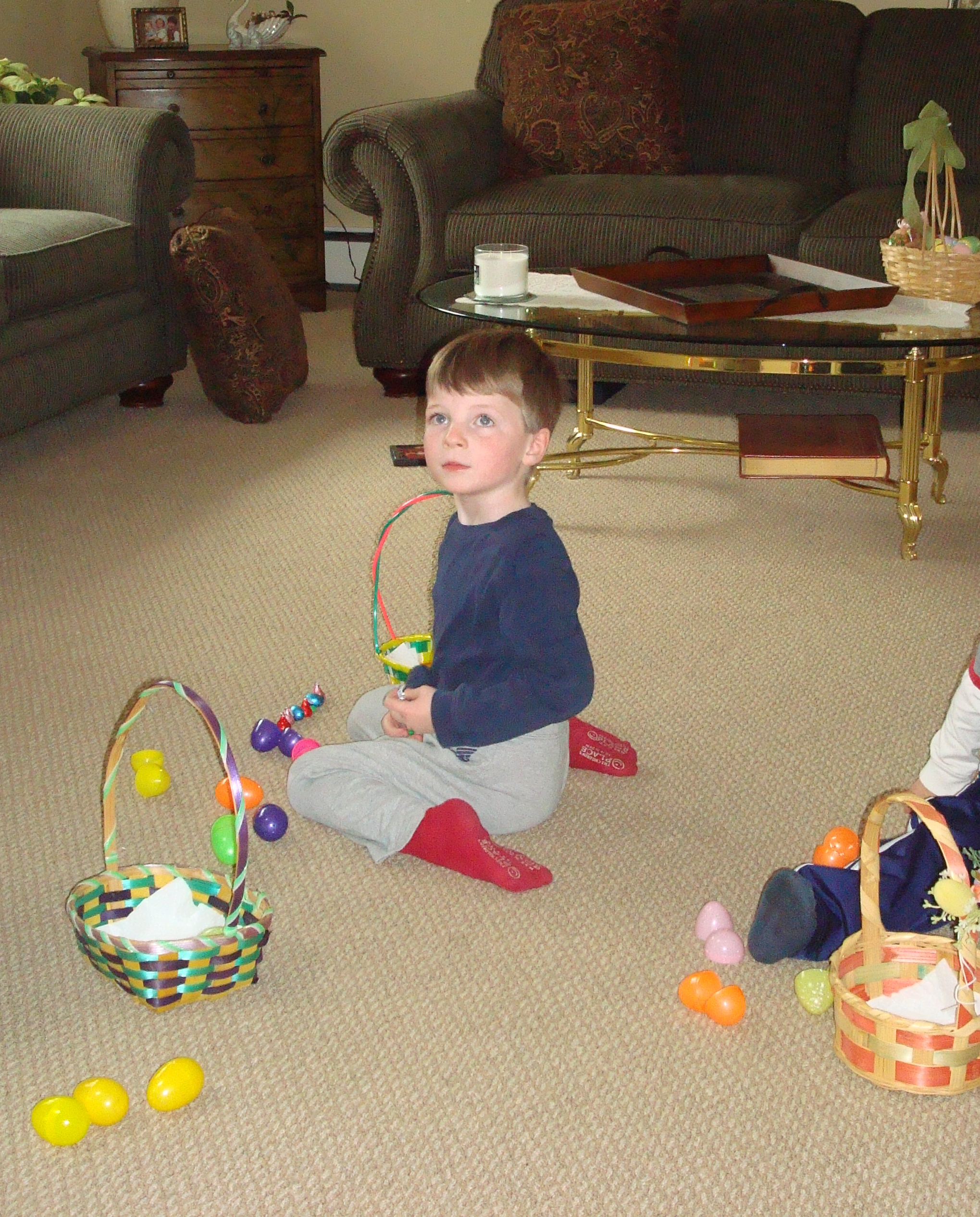 We went to MeMa and Pop-E house for an egg hunt and then eating the candies that were in the eggs