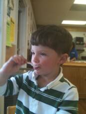 I love going with Pop-E, especial when we have to deliver Mobile Meals. They have a room there that has a lot of boys for me to play with and then McDonald's