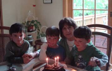 The cousins were at the mall with their Mommy but were stopping over after the mall to surprise MeMa when she came home from school.