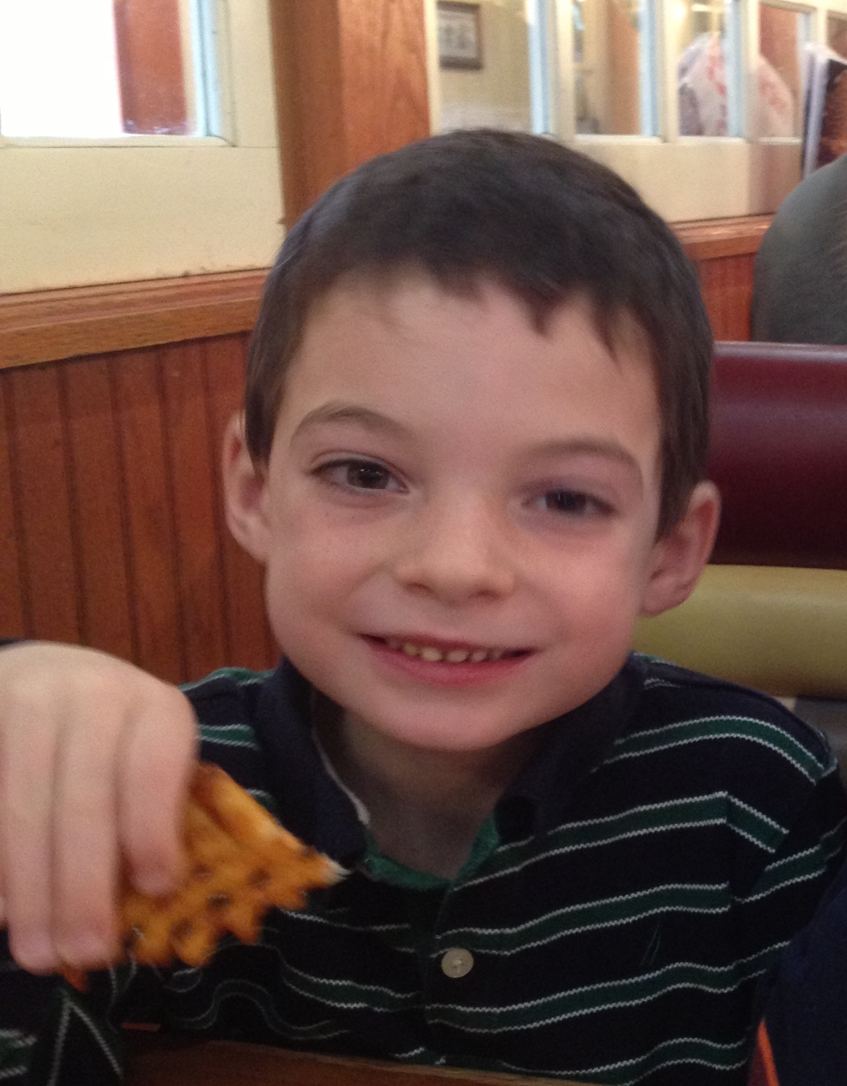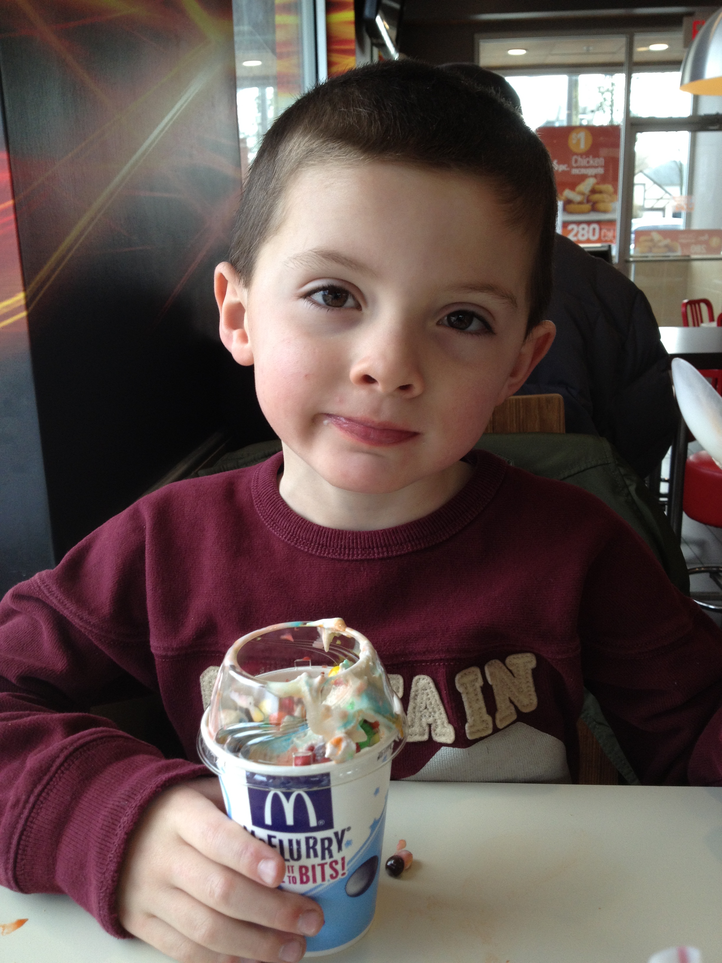 At Dunkin Donuts. Daddy said that breakfast is the most important meal of the day. I told him - No, Dinner is the most important because if you don't eat your dinner you don't get desert - Not bad logic for a 5 year old