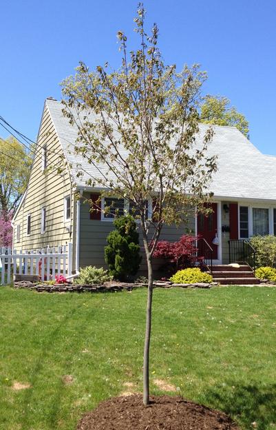 A whle ago the town came to our house and cut down a tree we had in the front. Pop-E told Mommy and Daddy that if it was a town tree then the town should replace it. What do you know, Daddy called and we now have a new tree