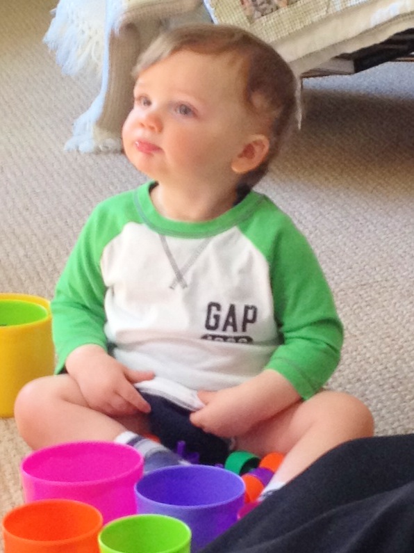 MeMa and Pop-E are watching their grand nephew Eamon. We came over to see him and when I said hello he statred to cry. But I then told him a joke and he started to laugh. When his Mommy came to get him all he wanted to do was play with us.