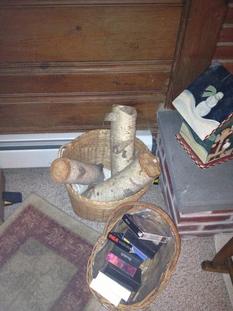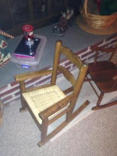 Since we were little Pop-E always told us to sit correctly on the rocking chairs or we would get hurt. Well it took years but it finaly happened. I fell off the chair and hit the fire logs - of course I got a cut under my eye. The funny thing was Pop-E never said "I TOLD YOU SO!" Here is the famous rocking chair and the fire wood