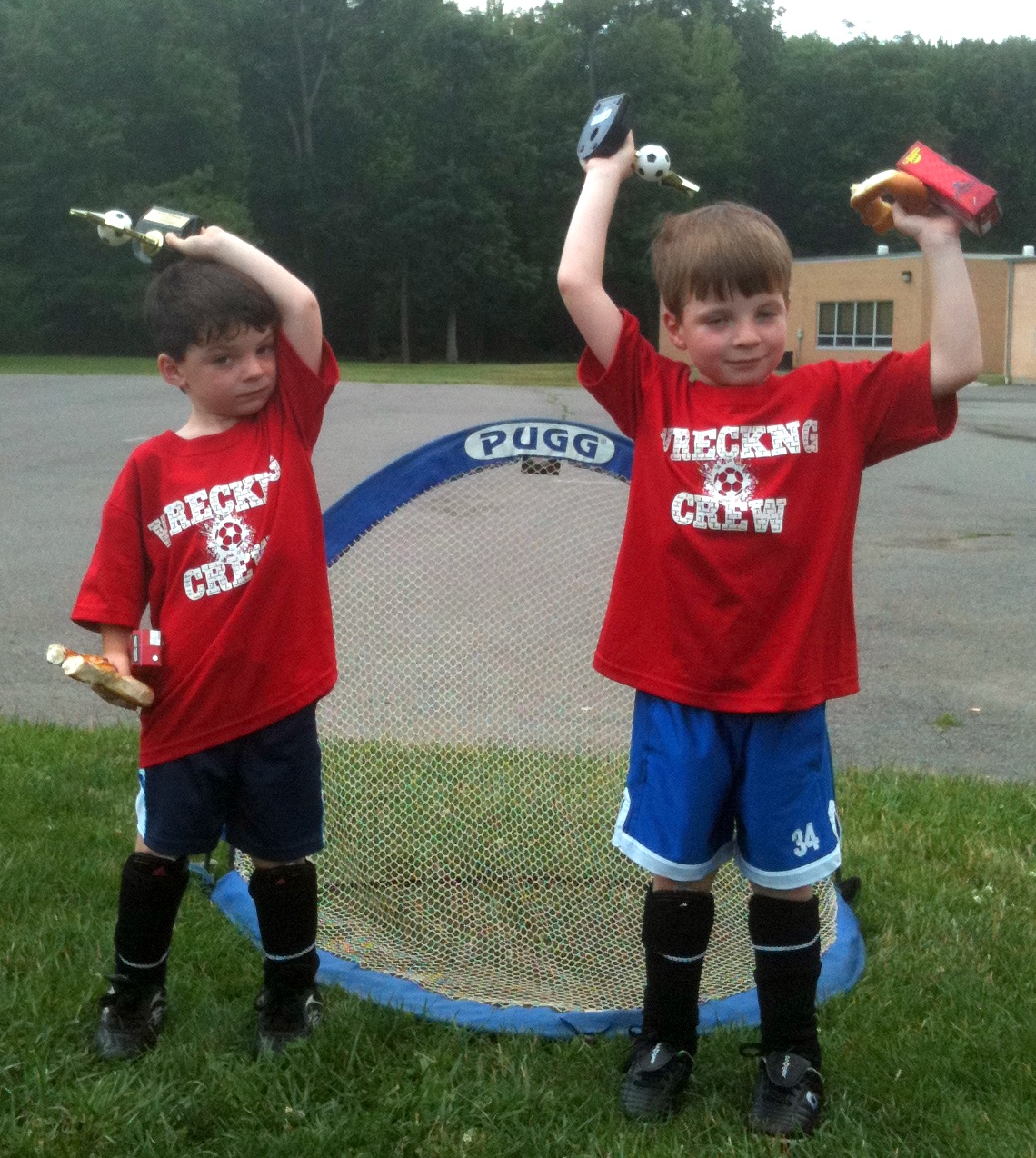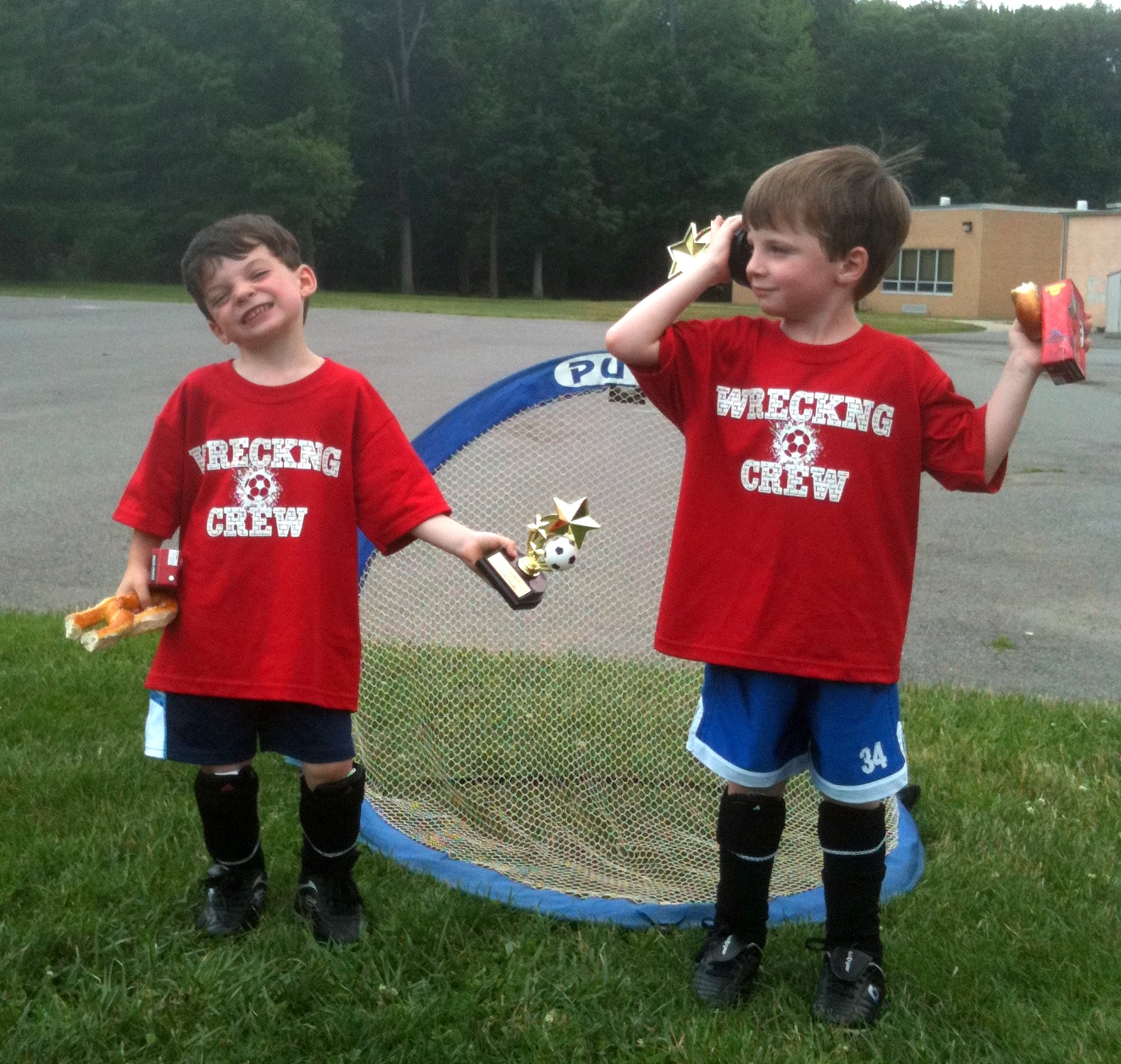 Here is a picture of their team (The Wrecking Crew) as well as the trophies they got. There is also a picture of me holding up my trophie - a pretzel and a drink