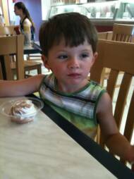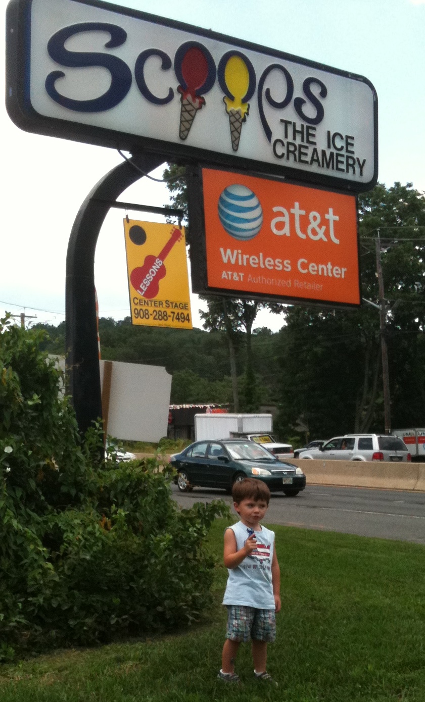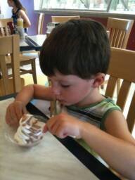 My turn with Pop-E because I could not go to MeMa's camp. So Pop-E took me for a special treat - YEP - SCOOPS and I had soft ice cream twist in a cup - Pop-E still remembers Daddy's problems with CONES