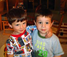Later, we were in front of our house and Pop-E said that Luke was going with him on Wednesday and that Mommy had a surprise to tell Daniel and I. We tried to guess until Pop-E finally told us that Daniel and I were going to CAMP at MeMa's school.