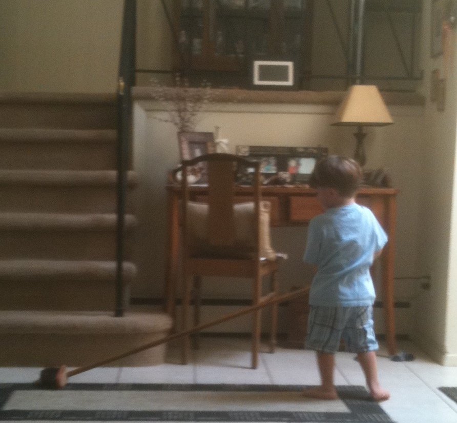 MeeMa is teaching me how to use a broom. You know it is hard to clean a rug with a broom. Check the video for a battle of "wits" between me and MeeMa, but wait for music to stop