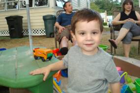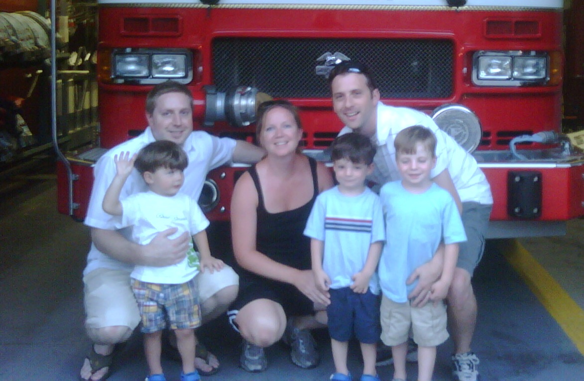 We went to Jersey City with Aunt Anna and Uncle Michael. Here we are in front of the fire engines and having an ice cream snack