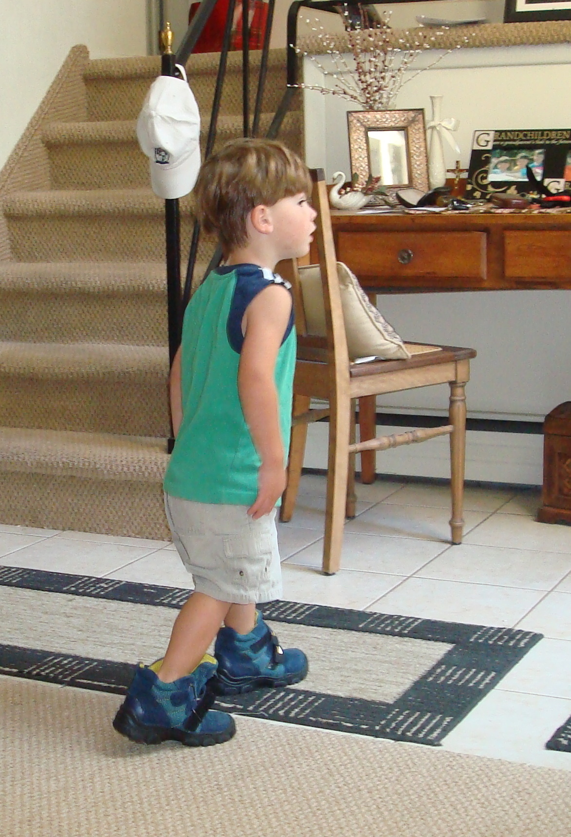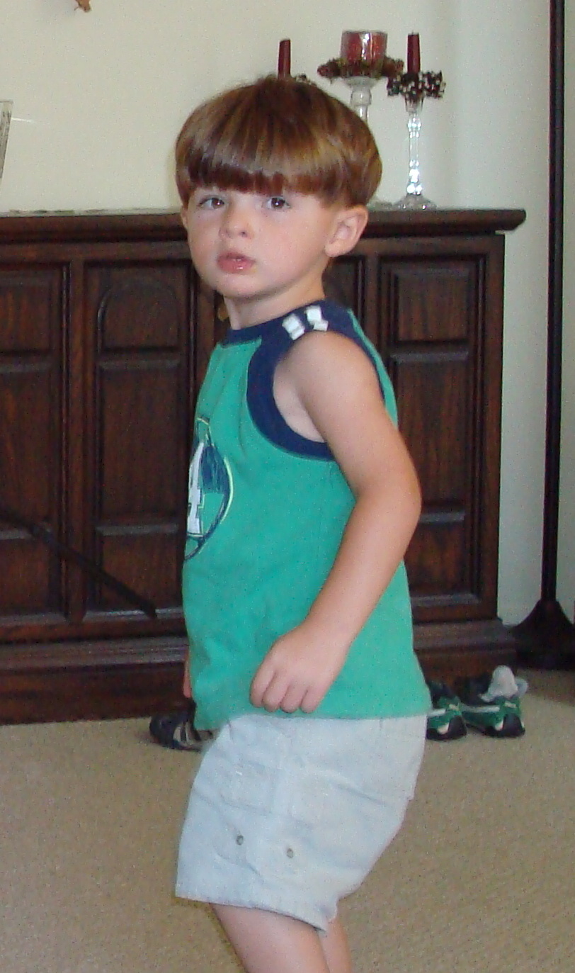 Notice Christopher's before and after outfits and also Luke's - do you see any different in Luke's - check below his knees - yep, he is a shoe man.