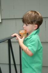 Still hanging out, this time with Trey. Trying to figure out what snacks MaMa and DaDa are trying to get me to eat. Do you notice that Trey wants nothing to do with them because he has figure out they are "vegetables" sticks