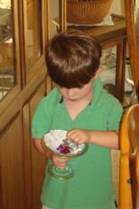 I am with Pop-E today and we stopped off at his house for a snack. I decided to check out the candy supply in case MeeMa forgot to replimish it. And of course we always finish with ice cream
