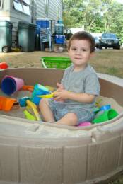 It is MeeMa and Pop-E's turn to visit after last weekend with the cousins. As you can see I am a dinosaur expert. Here is a puzzle I do and one of the many books I have on dinosaur. Next to Dinosaurs, playing in my sand box is also a favorite
