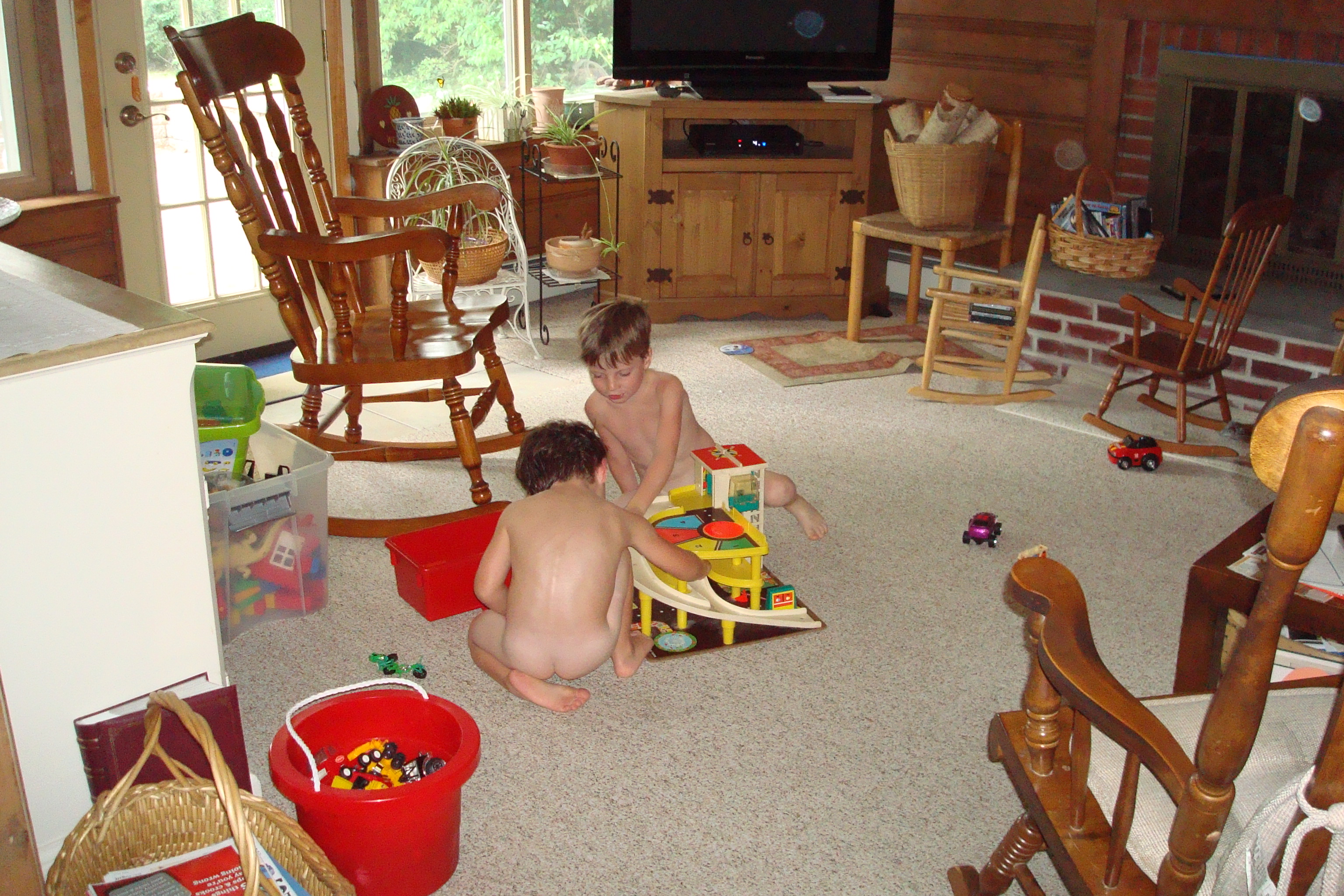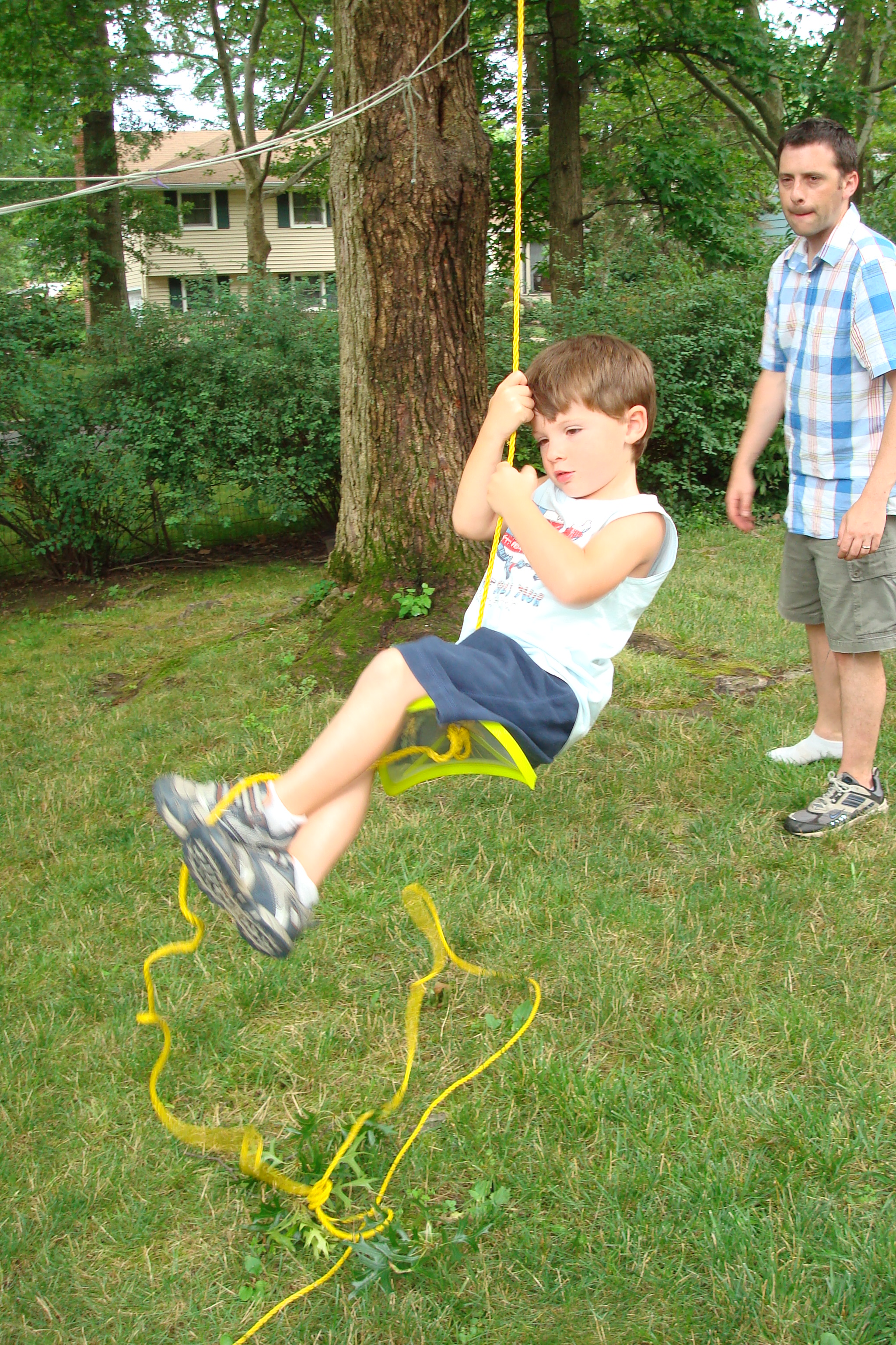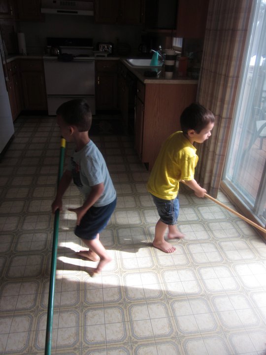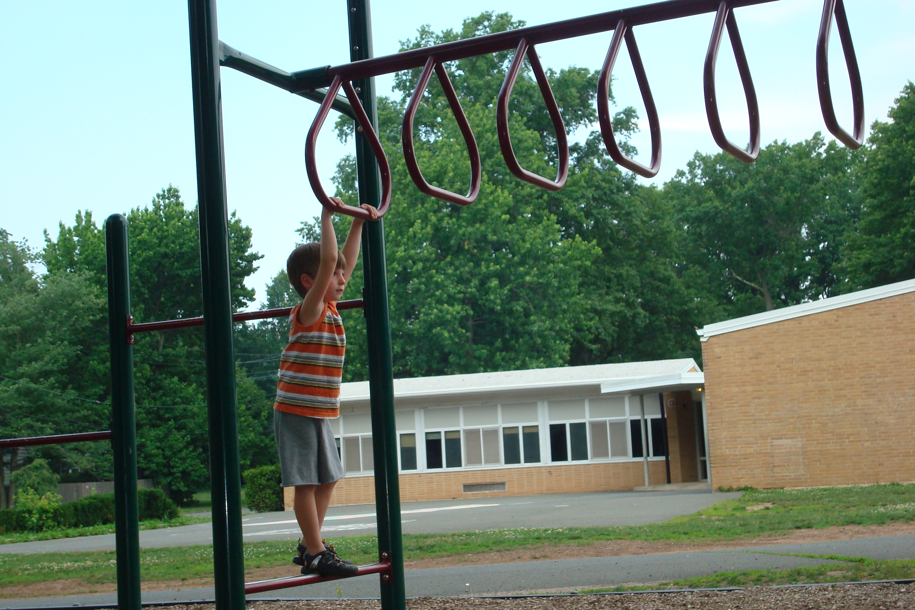 Doing some gymnastic routines at the playground. When we got back to Pop-E's, Luke was there playing with the Super Soakers. After a while we went in to have our clothes dryed