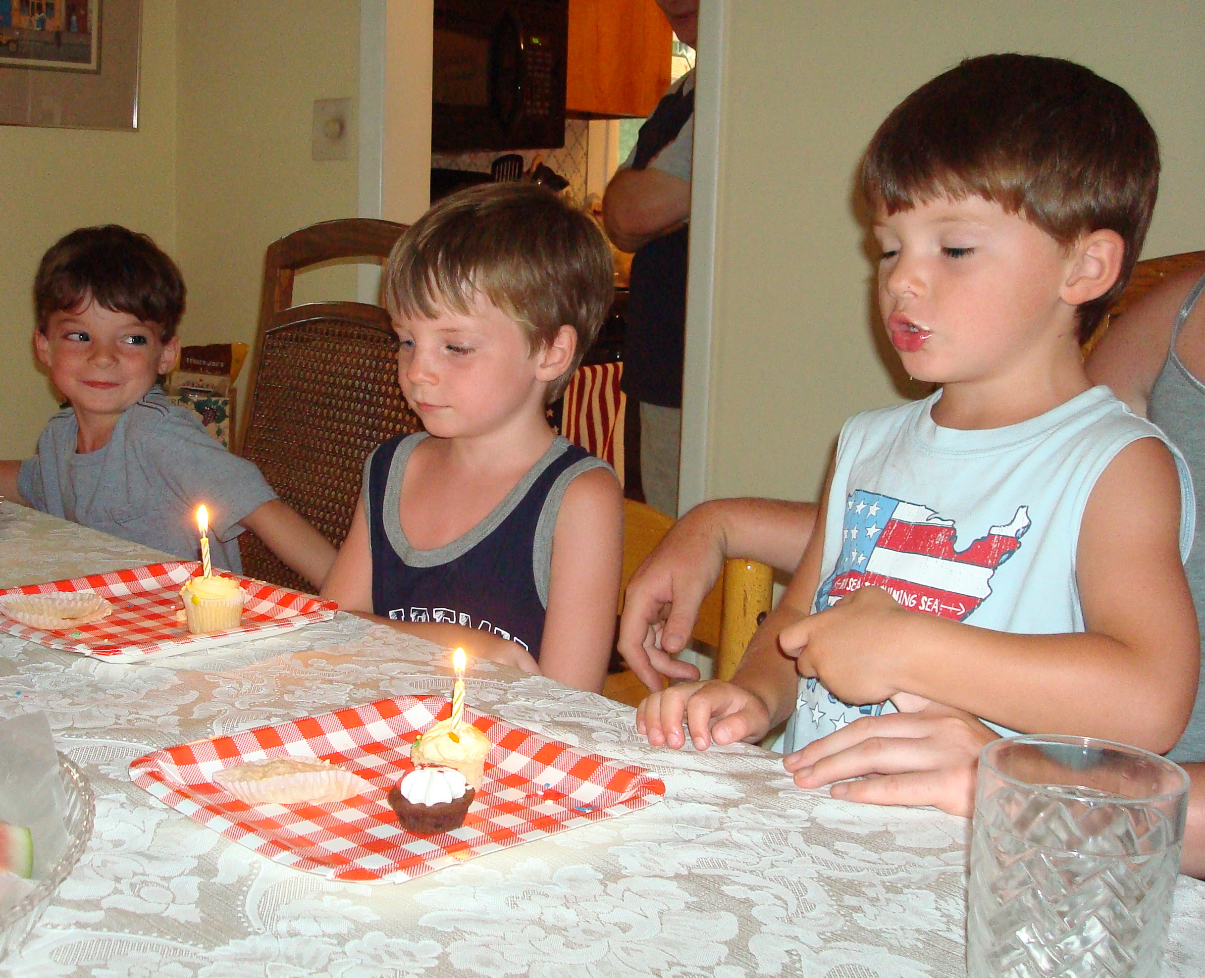 We went to MeMa's and Pop-E's for a forth of July BBQ. We had a dip in the pool, played on the swing Pop-E made for us and sang happy birthday to the United States of America. We then went to see Fire Works in Mountainside - Christopher cover his ears from the BOOMS - He must take after Pop-E