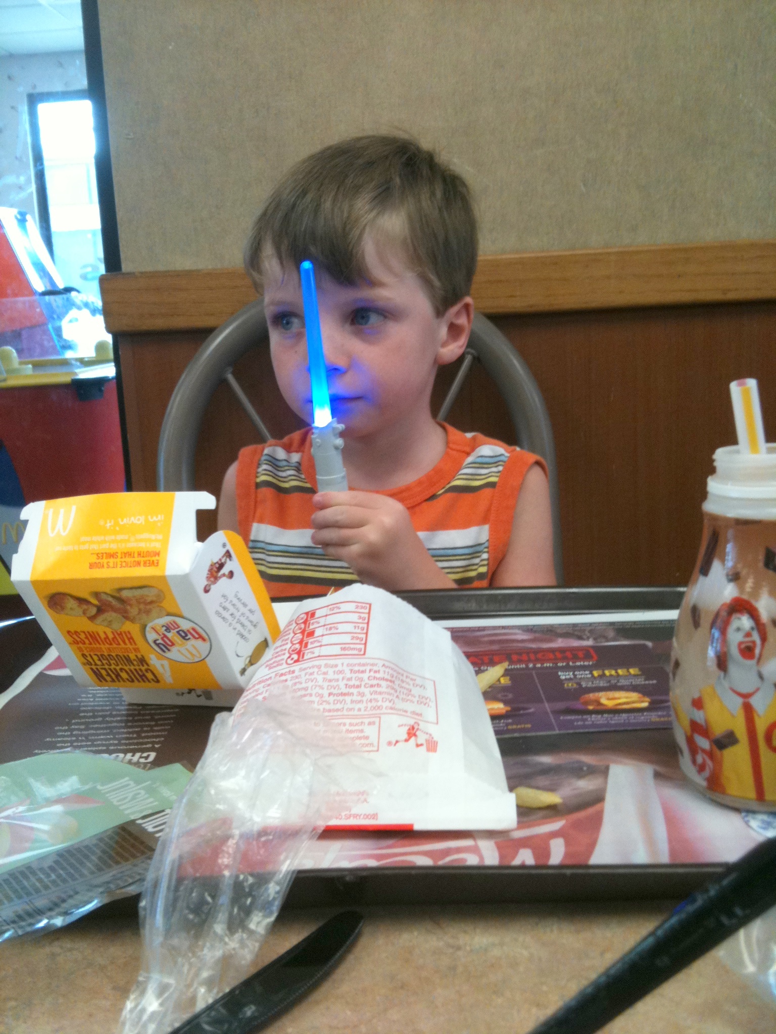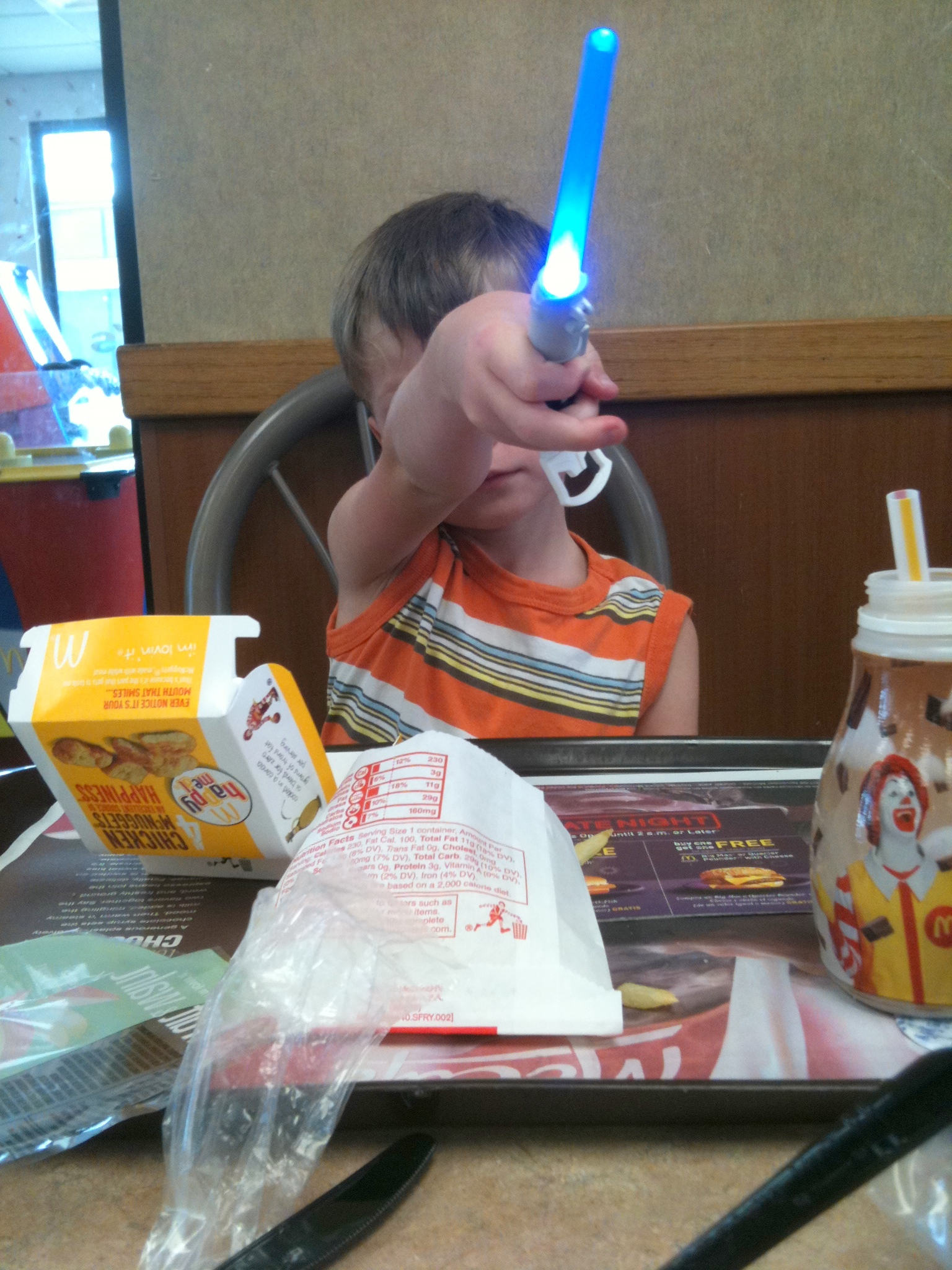It's been a while since I been on a date with Pop-E and of course we went to McDonald's for lunch and the prize was a Light Saber which did not work. I then saw a girl come in and thought I recognized her. I did, it was Princess Leah and all of a sudden the Saber came on and I saluted her. Then she left and the FORCE must have gone with her because the Light Saber stopped working - OH WELL - another tale to tell my brothers
