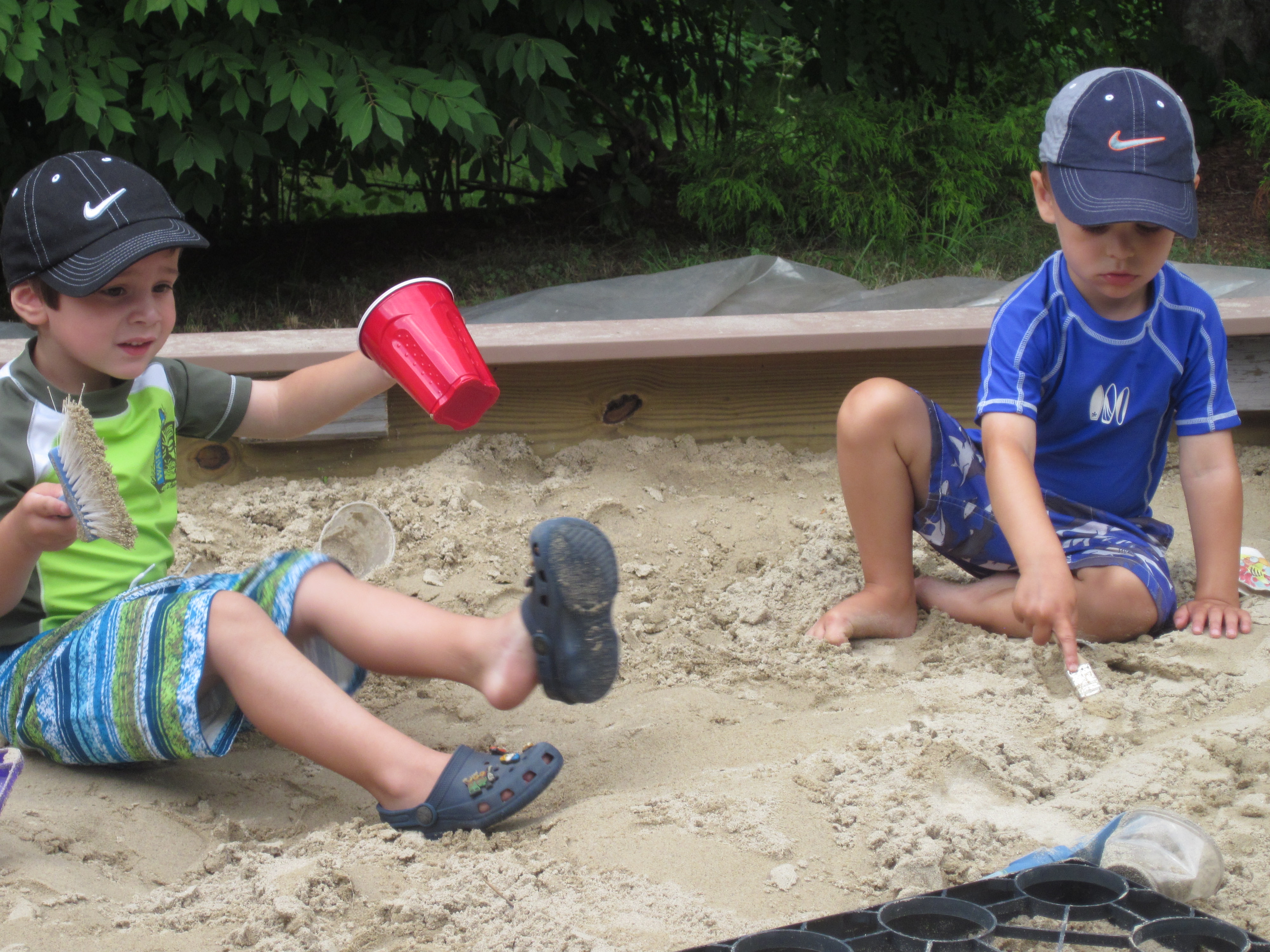 OH, and Valerie put us to work moving sand on the beach. a picture with Caroline and Phillip. And I am the only one that protects myself from the sun - RIGHT POP-E
