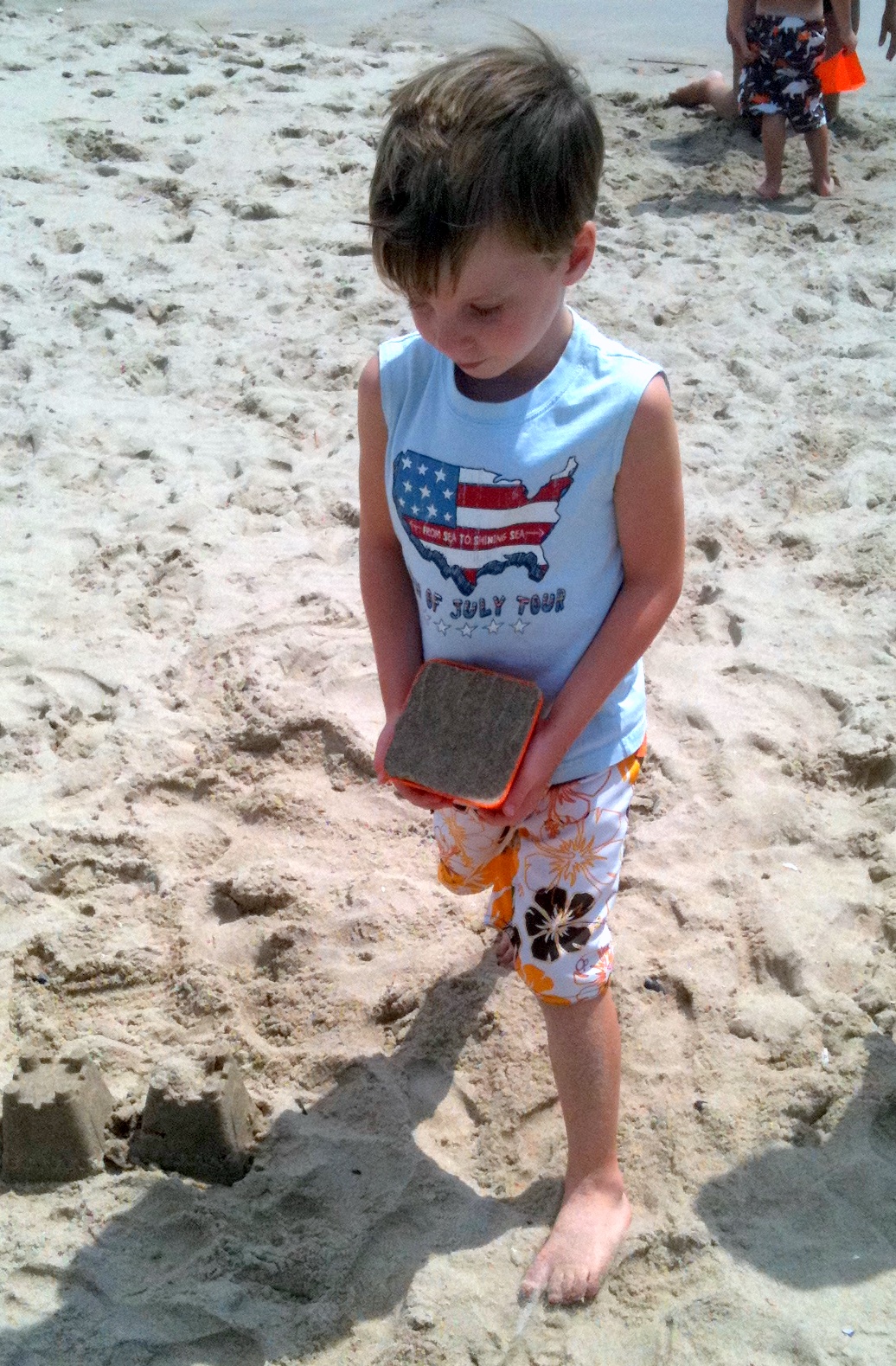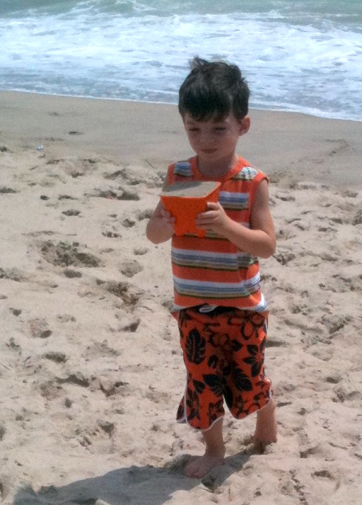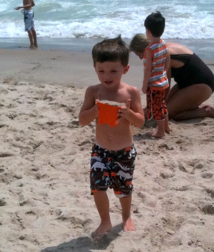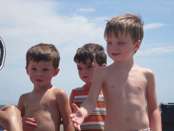We wanted to go find Uncle Scott when we saw him walking down the beach path. Pop-E took us to find him and we met them as they were coming back (Scott, James and Jessie). Uncle Scott told Luke he found a light saber, I said I wanted to continue to walk down to the boats and so did Daniel. Luke went the other way with Uncle Scott to get the light saber