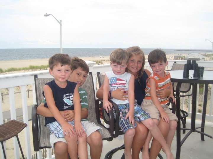 We went to MeMa's family's reunion at Valerie and Gasper's summer home in Manasquan, NJ. Since Mommy and Daddy had a wedding, Daddy drove us down and MeMa and Pop-E met us there and Daddy and Pop-E exchanged cars.