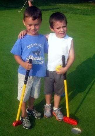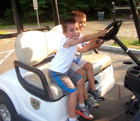 We are at the golf course hitting a few and Trey and I are still discussing golf and learning how to handle golf carts. Aunt Whit also was involved in giving points - do you think Lilly was reaally listening. Daddy showed up in a New Dress Code for golf and a new Driver - to hit them long and straight.